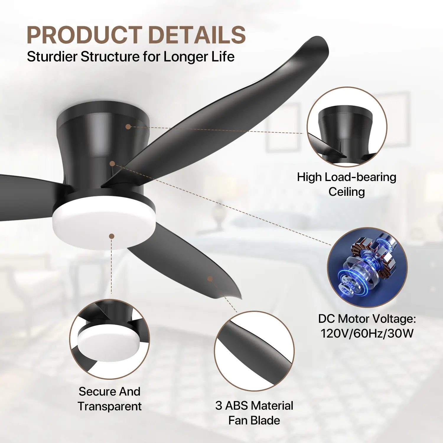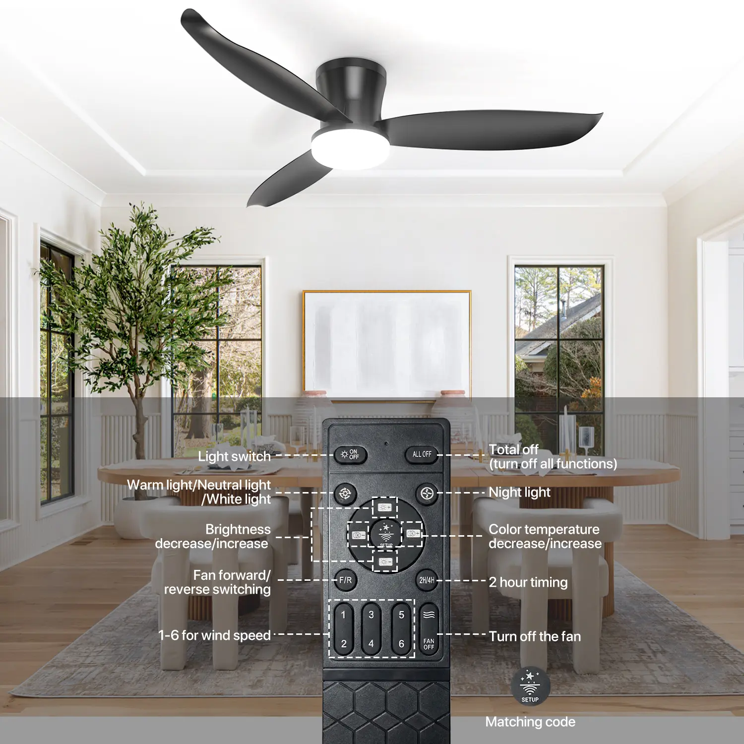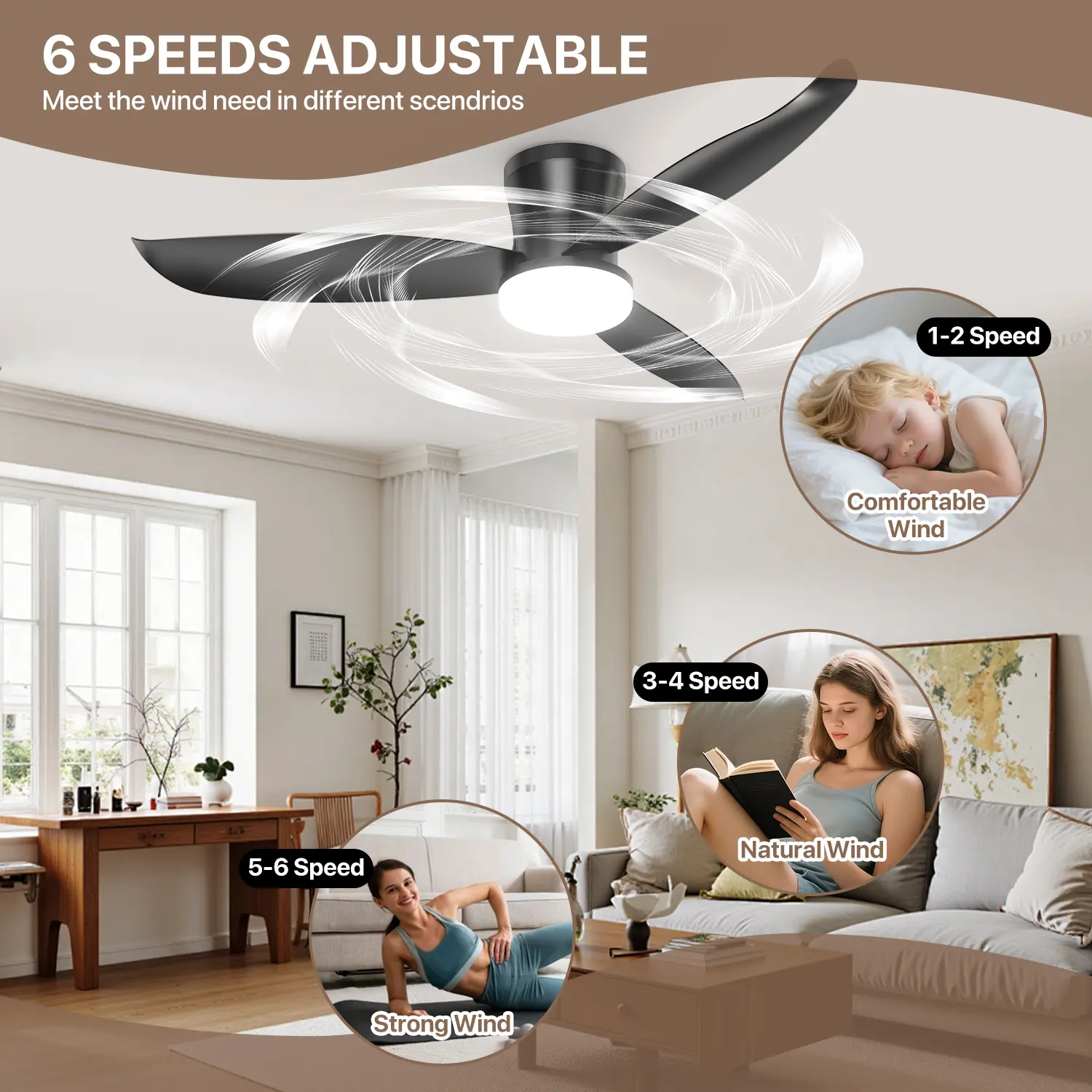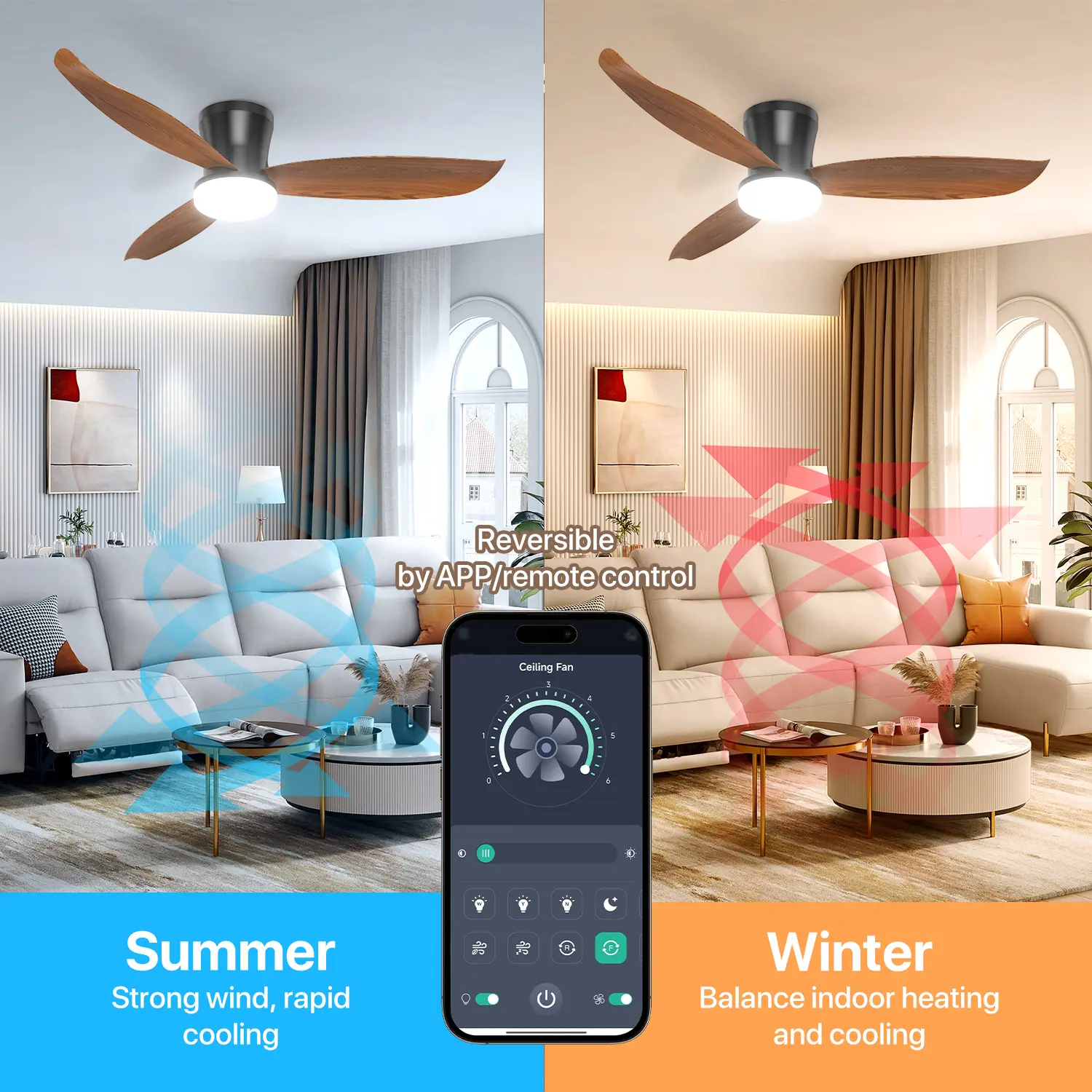 ·🌬️ Precise Speed Settings: Features 6 speed settings from gentle breeze to powerful cooling. The reversible motor ensures rapid cooling in summer and circulating warm air in winter.