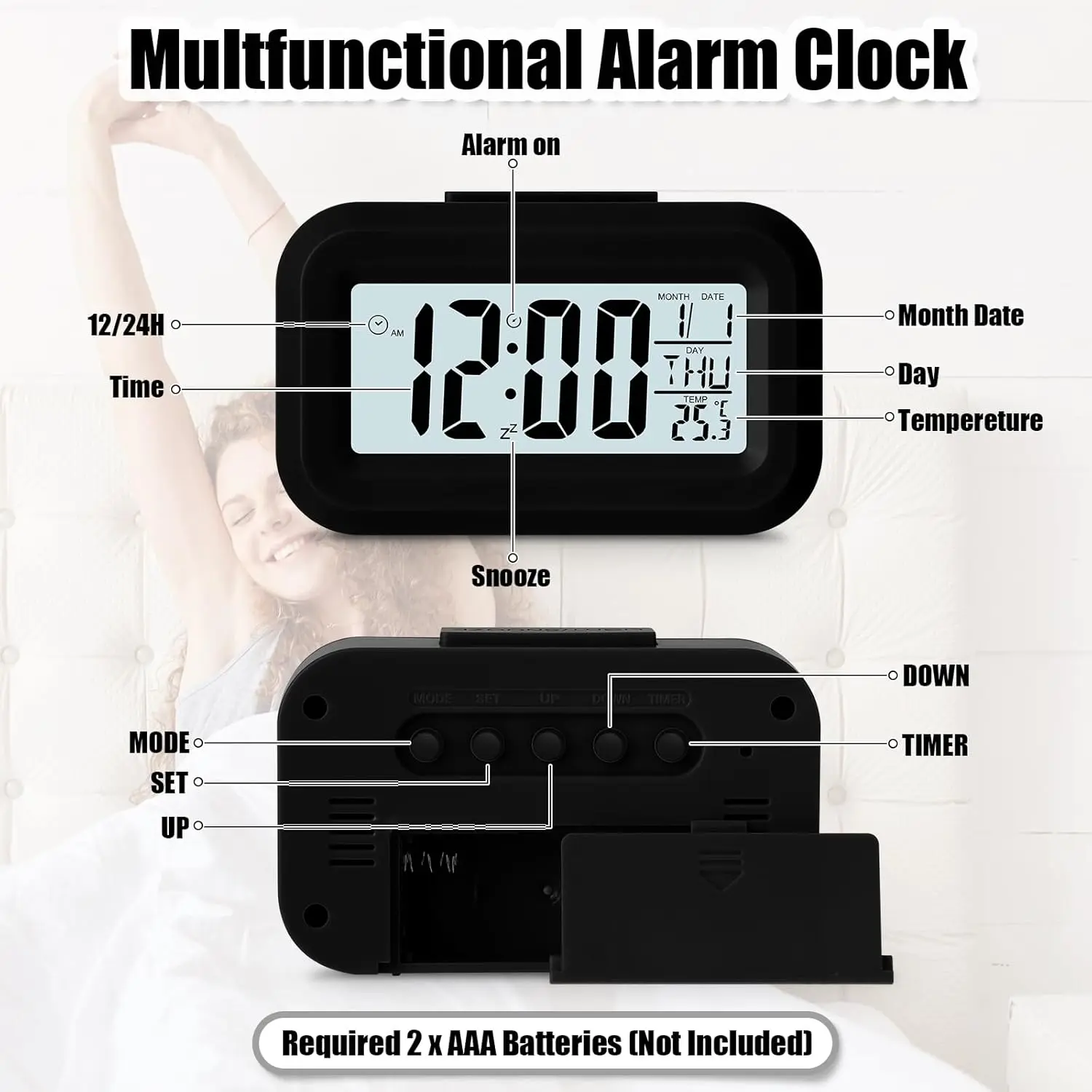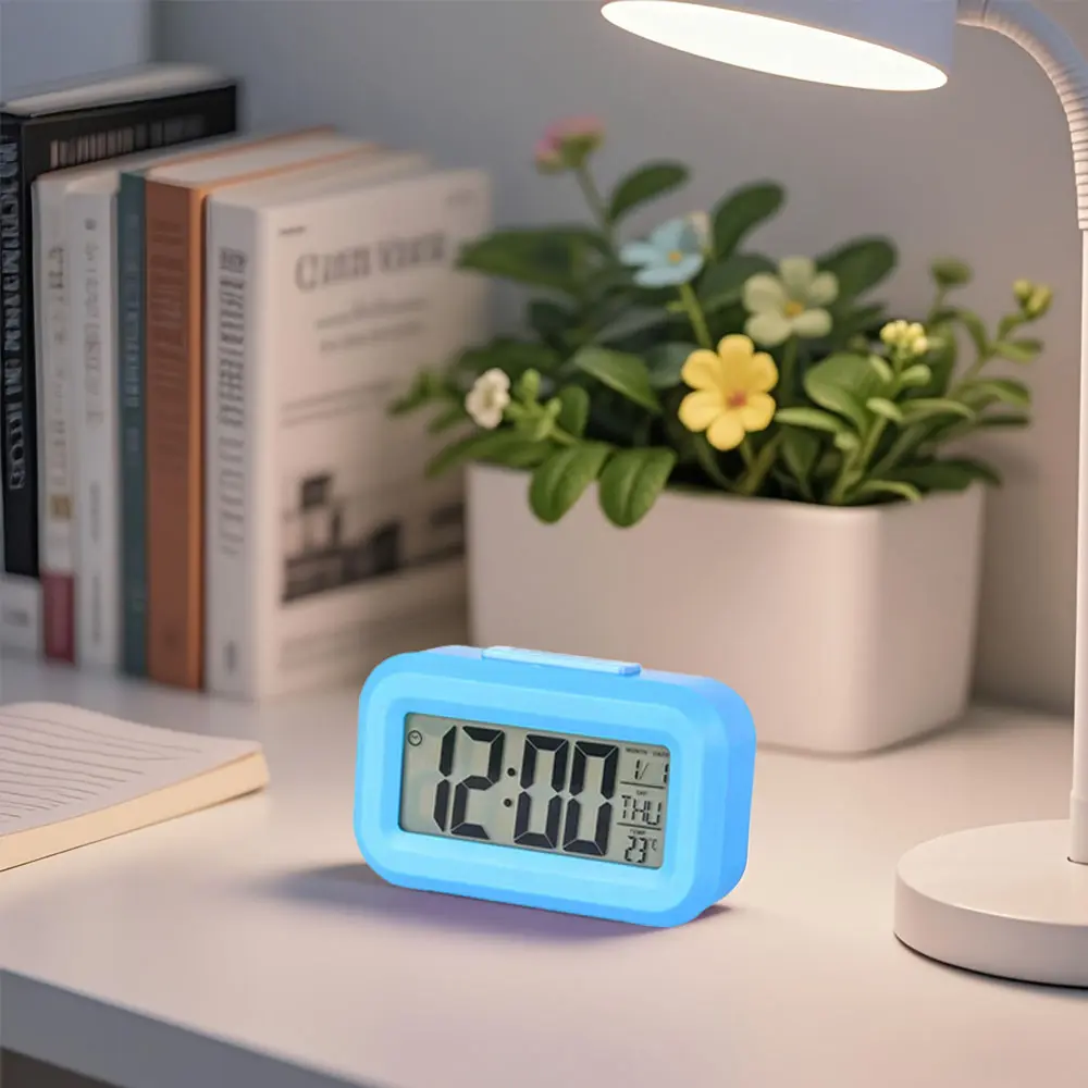 1 piece new style student alarm clock, electronic clock, smart desk multi-functional clock with night light, temperature, calendar, kitchen timer, Desktop electronic clock