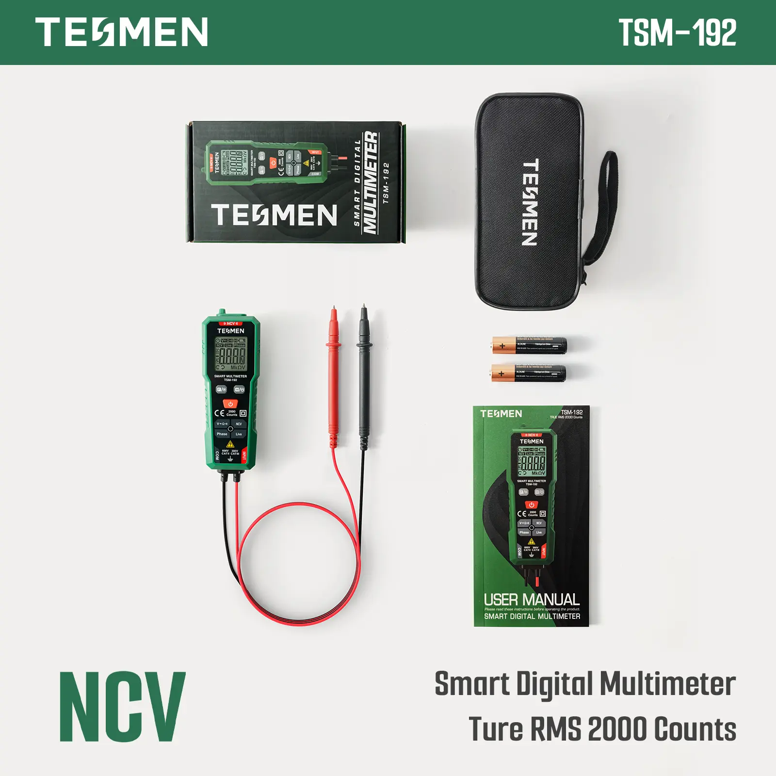 ·【Worry-free After-sales】Package includes a digital multimeter, 2 test leads non-detachable, a storage bag, 2 AAA bαtteries, and a user manual. We provide a 3-year maintenance service and lifetime technical support. If you have any questions or problems while using the product, don't hesitate to contact us!service-tiktokshop@tesmen.com