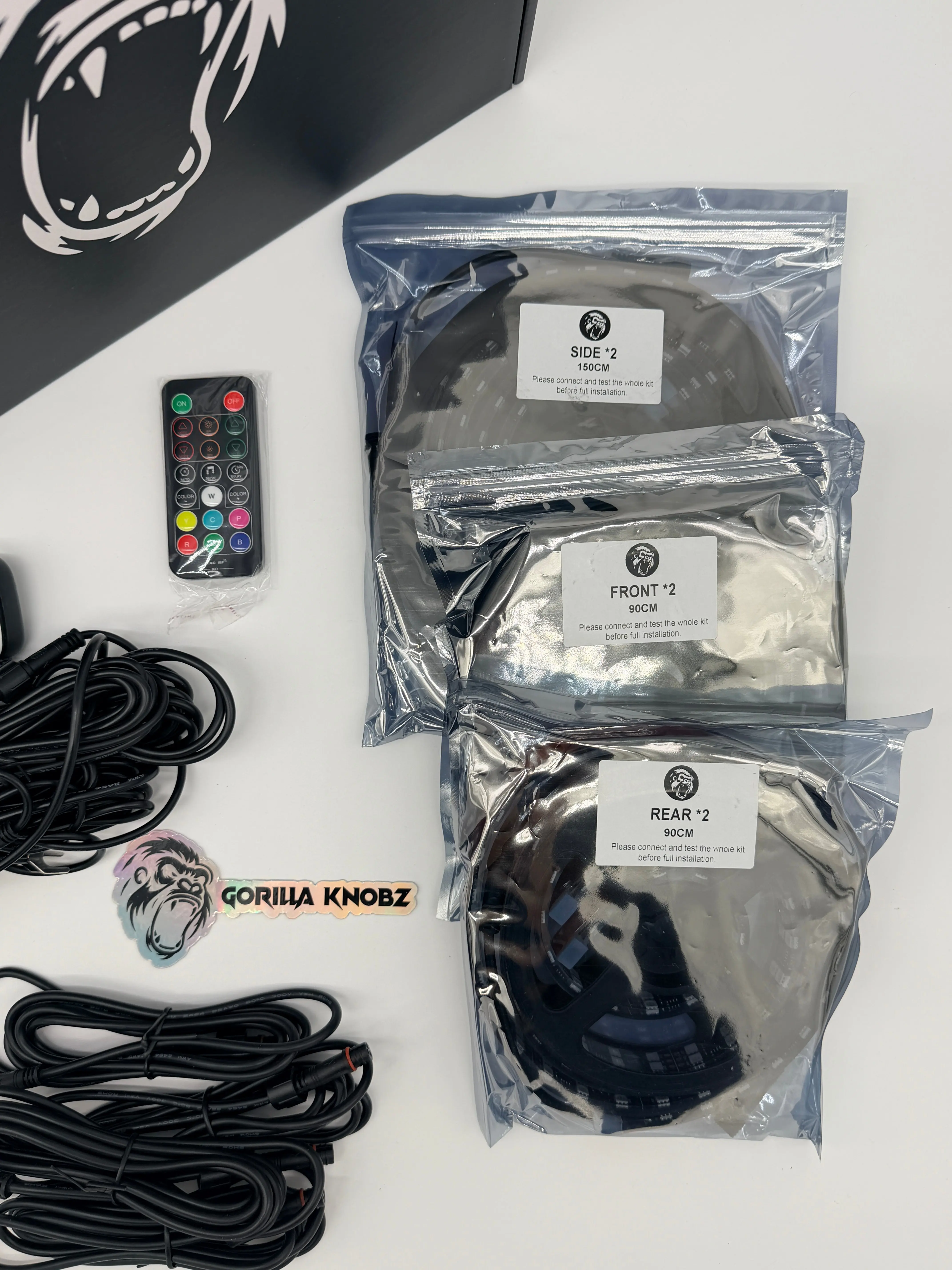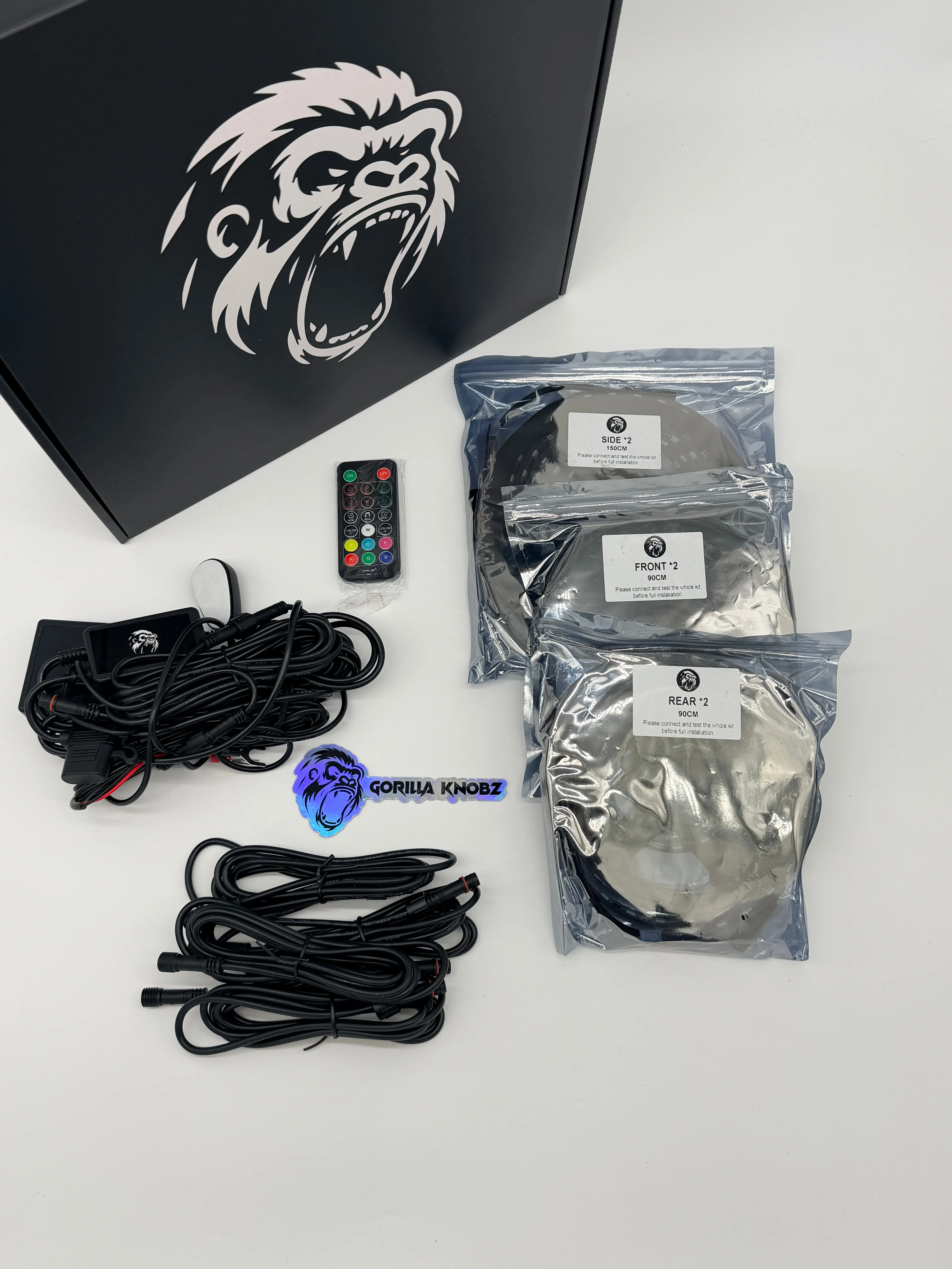 Every single under-glow from other brands will only be "single-row" under-glow. This is why most under-glow kits are extremely dim. Ours on the other hand is a double row under-glow with flowing ,solid-color, strobe, and sound reactive effects just like our Smart Rings.