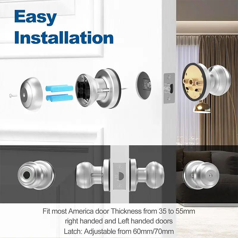 EXCELLENT PRODUCT. Very satisfied. Installation is easy if you follow the instructions! Don't have to charge this knob. It lasts 4-5 months on 4 AAA batteries! Better security... You get into your house in 1 second. No keys anymore!
