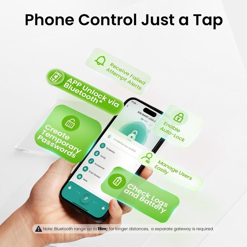 ·Auto Lock - Smart door lock enable the auto-lock feature and set the timer from 10s-30min! Now you don't need to worry about forgetting to lock the door.