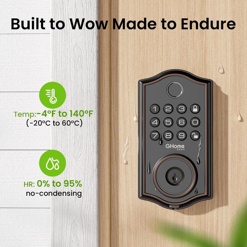 ·Multiple Unlocking Methods - Provide multiple unlocking methods for Ghome Smart door locks, including 50*fingerprints, 50*passwords, APP bluetooth Control,2*mechanical keys, you can choose any unlocking method that is convenient for you.