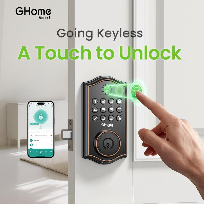 ·Fingerprint Unlock - Make your finger as a key, Ghome Smart locks can recognizes your fingerprint within 0.3 seconds, the recognition rate up to 99.99%, no more trouble finding your keys.