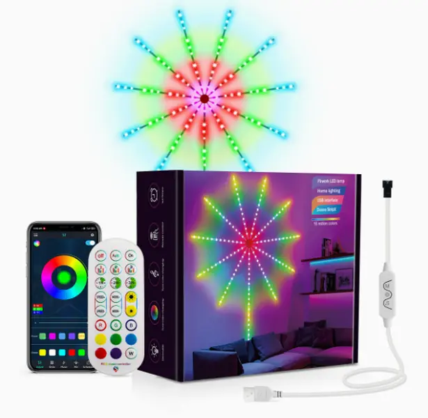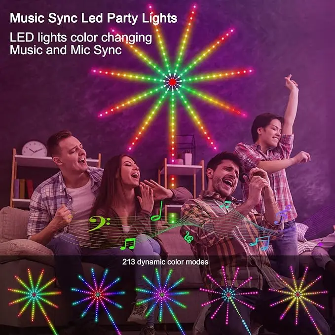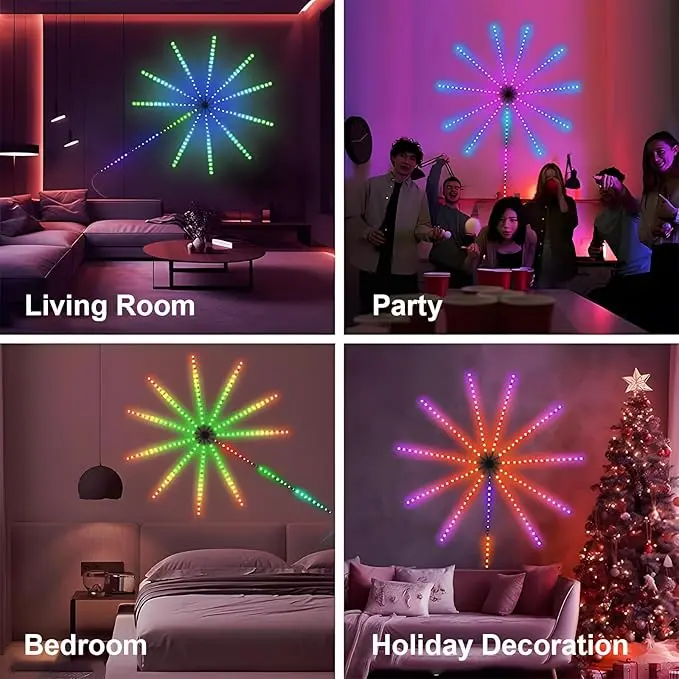 1PCS Smart Firework Led Lights Indoor, Led Fireworks Lights Music/Mic Sync with Firework Launch Effect Remote & APP Control, RGB Color Changing Led Strip Lights for Room New Year Party Decor