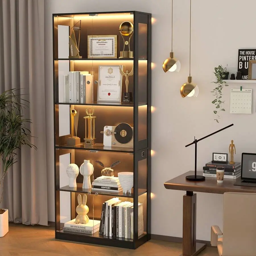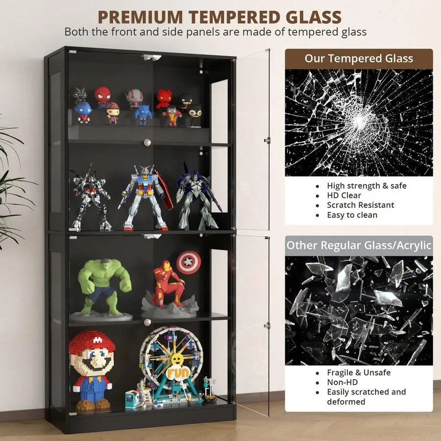 Showcase your items in style. High-definition glass doors keep dust out while providing a crystal-clear view of your collectibles, books, or toys. The tall, freestanding design makes a statement in any room.