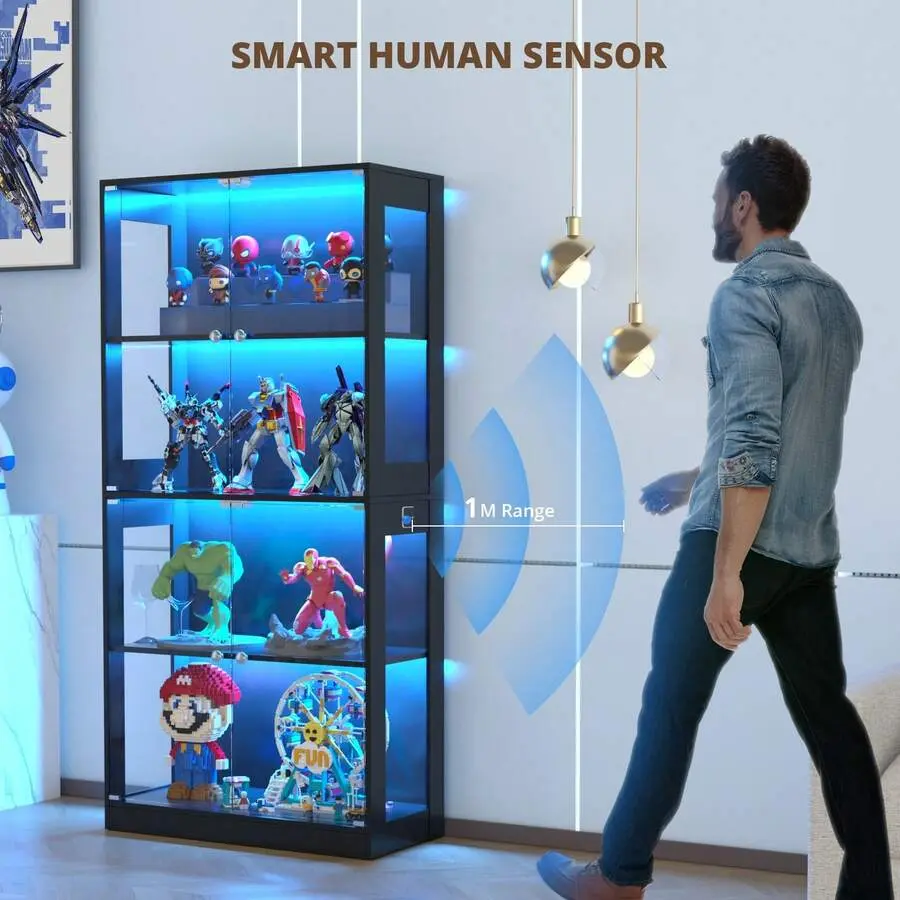 Experience modern convenience. The built-in human body sensor automatically lights up your collectibles when you approach. Features