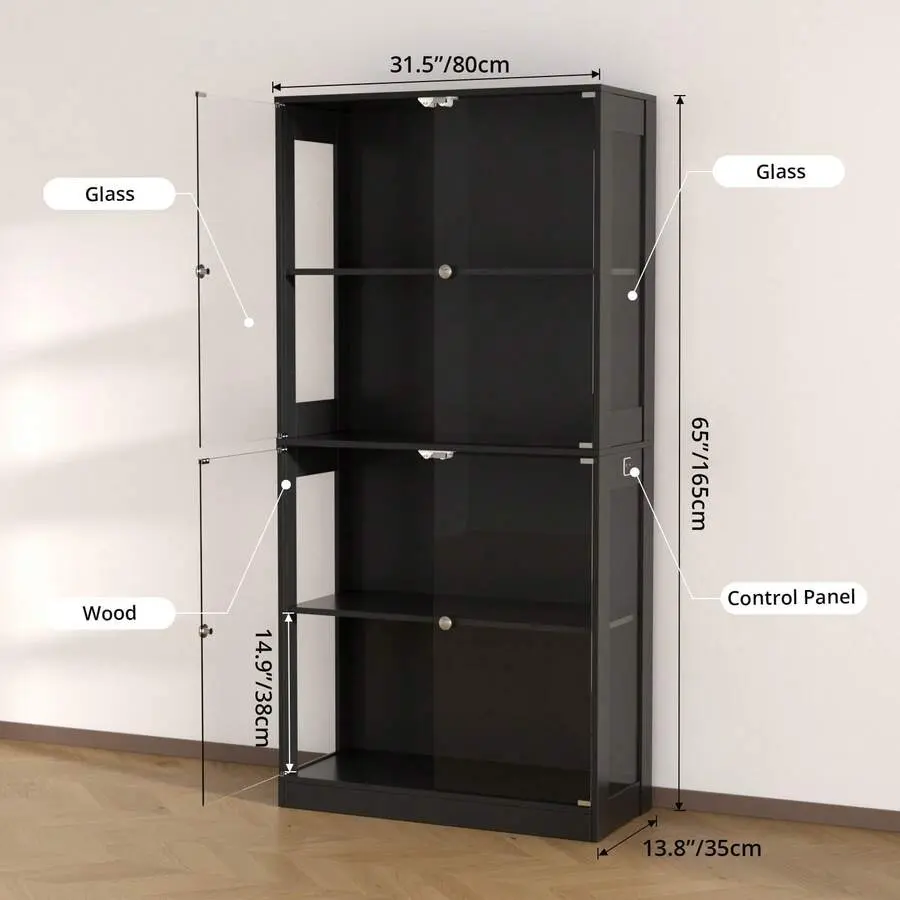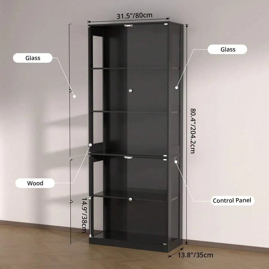 ·Features: LED Lights (3 modes, adjustable brightness), Human Body Sensor, Glass Doors, Sturdy