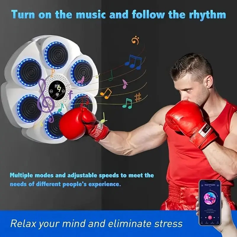 Smart Interactive Boxing Wall Pad with Wireless & USB Charging, Adjustable Height Punch Trainer, Multi-Game Modes Music Rhythm Training, Home Gym Equipment for Adults & Kids