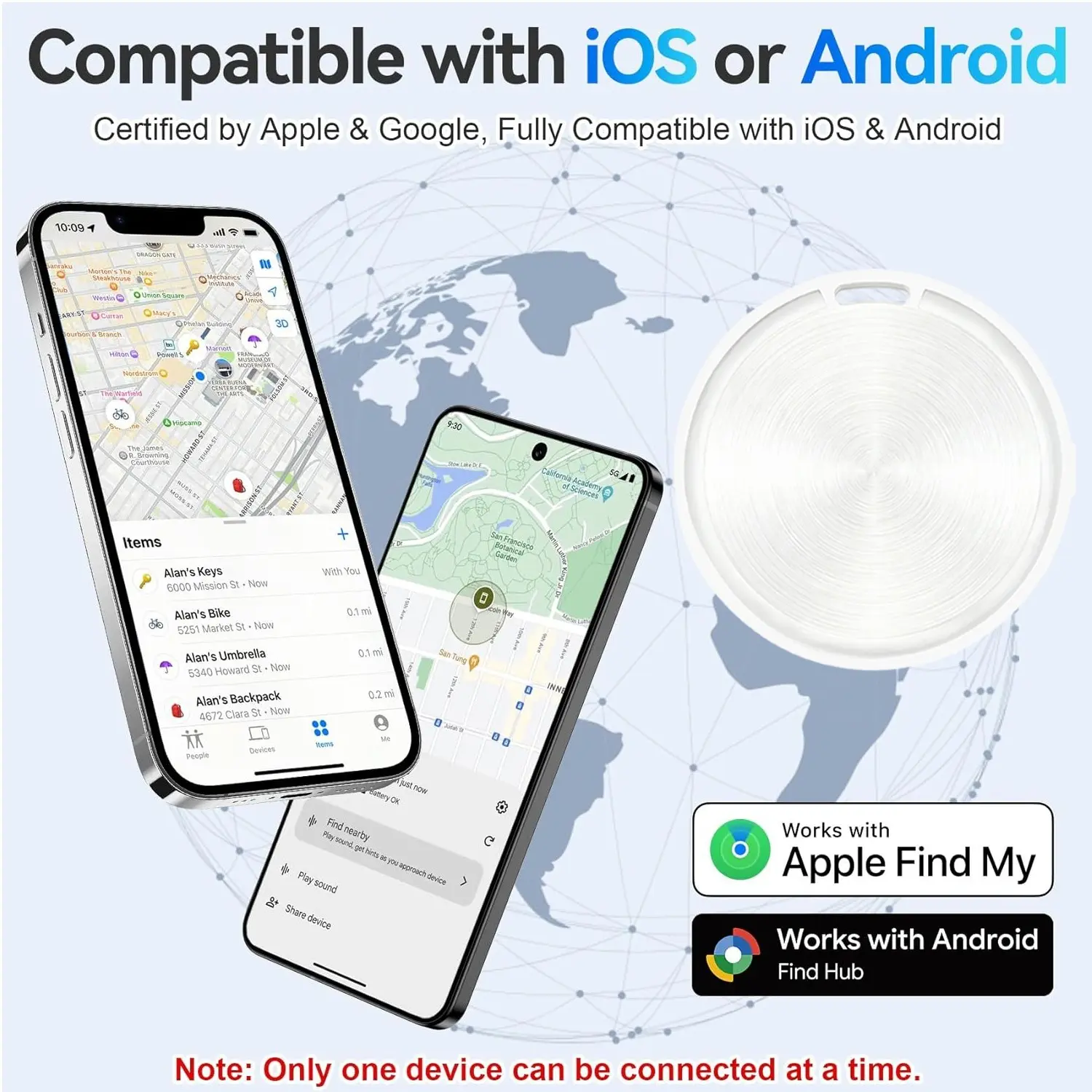 【Compact Size】: Fueled by its miniature design, this tracker is perfect for attaching to keys and bags without adding bulk.