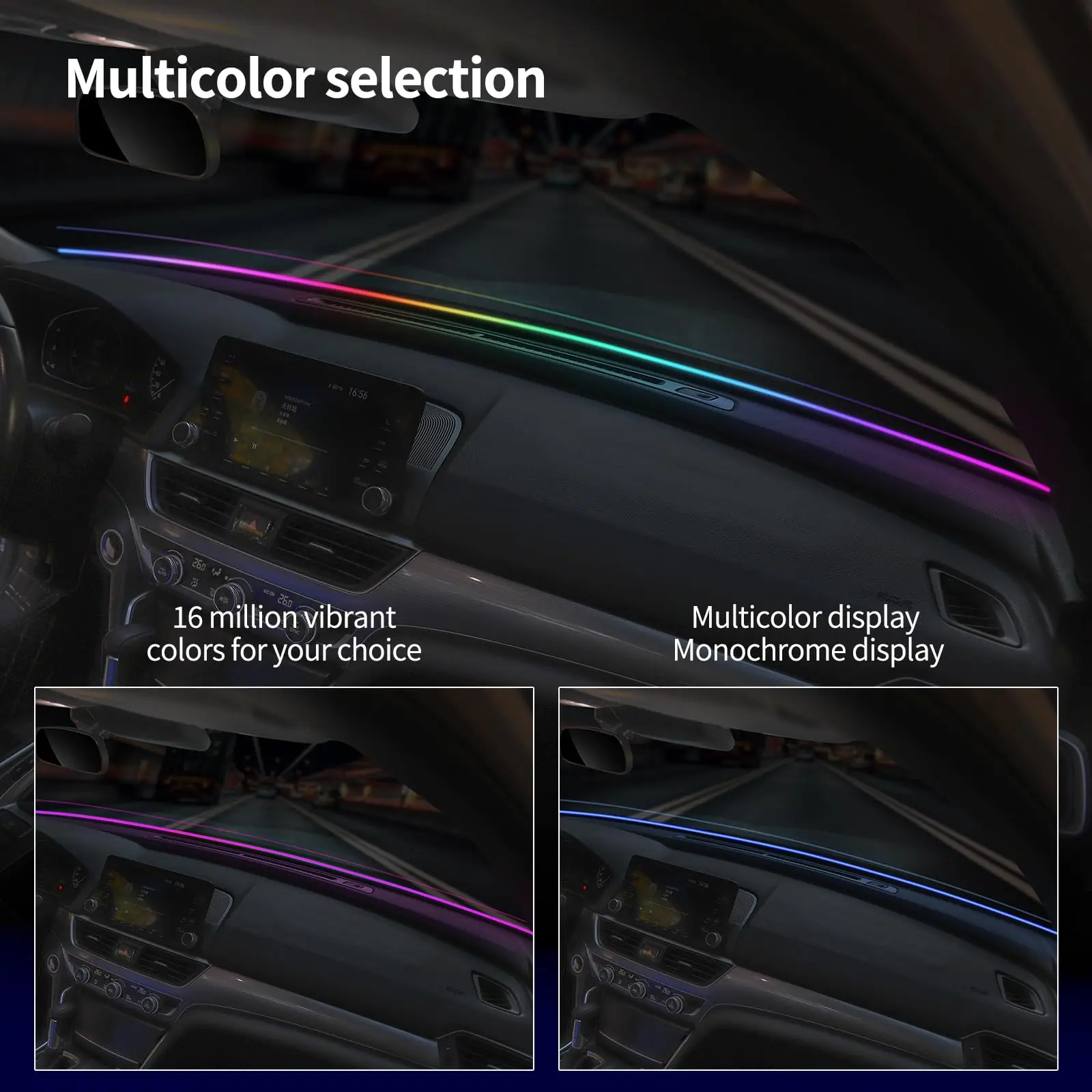 ·LED Strip: Fiber optic design for ambient lighting.