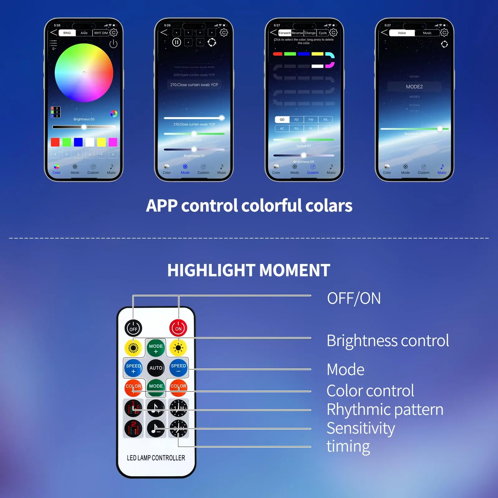 ·Music Sync: Lights sync to music for a dynamic look.