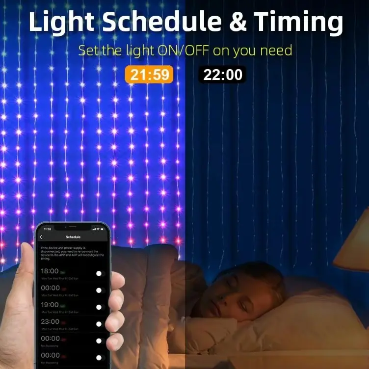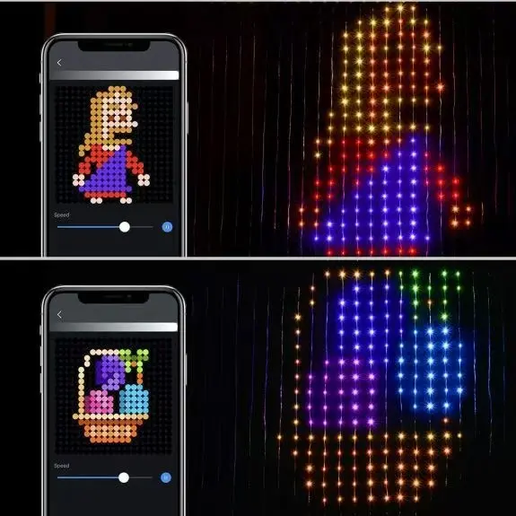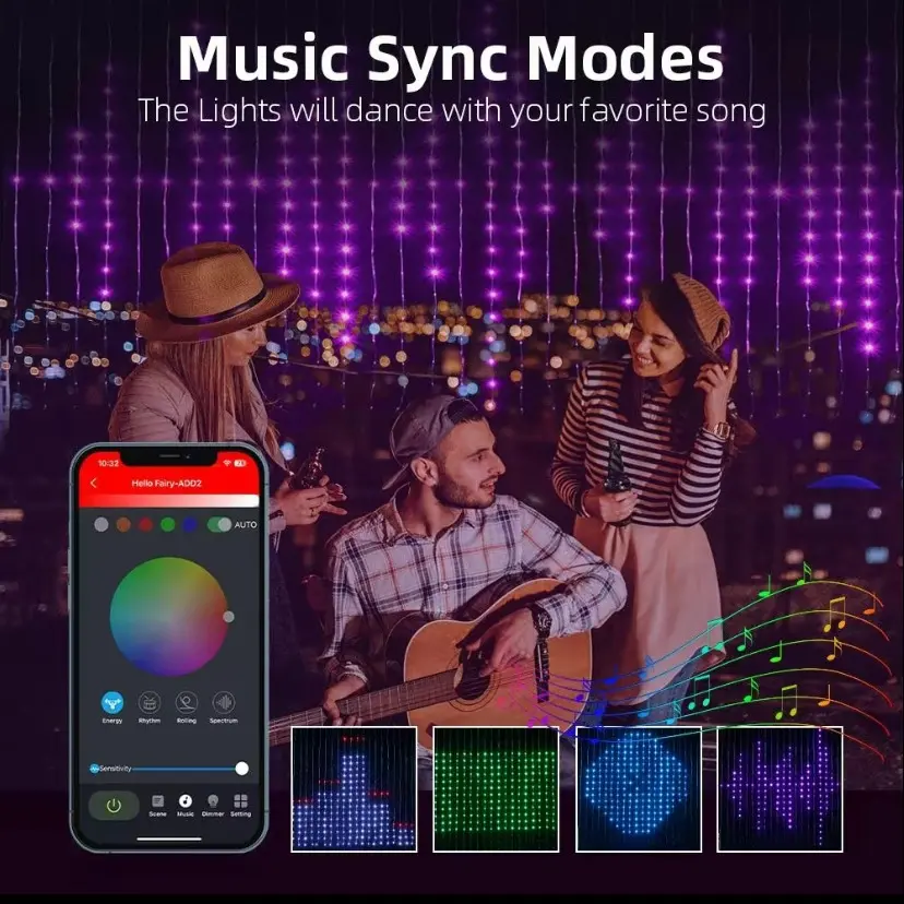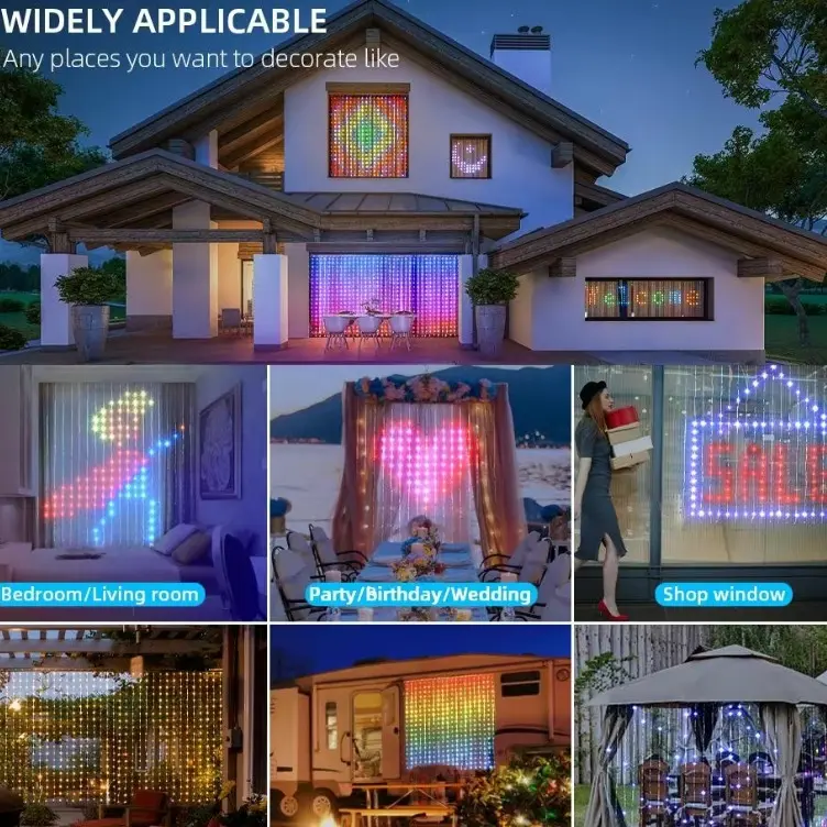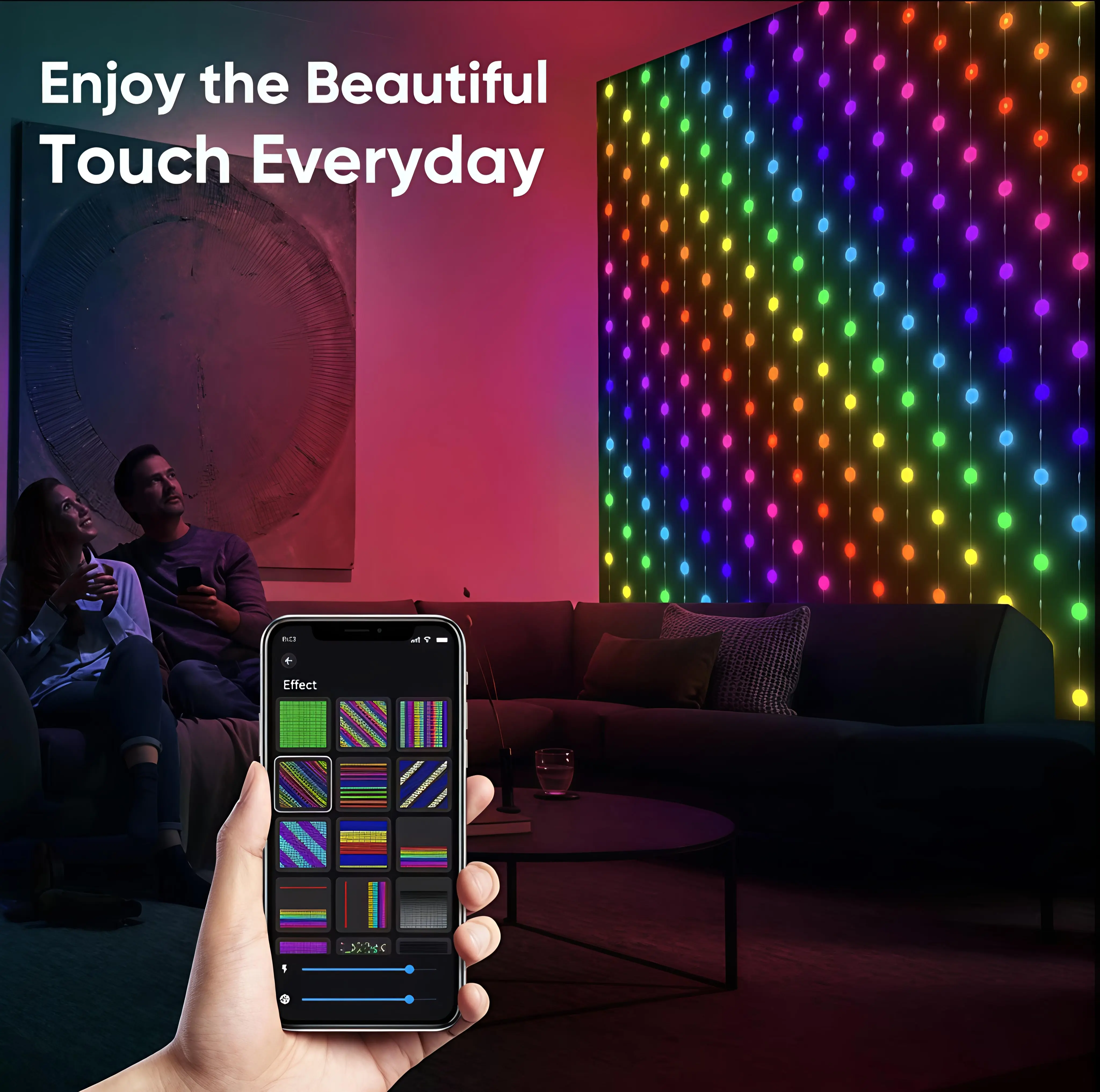 The curtain lights feature vibrant RGB colors that transform your space for any occasion. Enhance mood and ambiance with these dynamic lights. Perfect for creating a unique decor for events and gatherings. 🌟