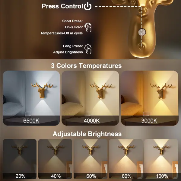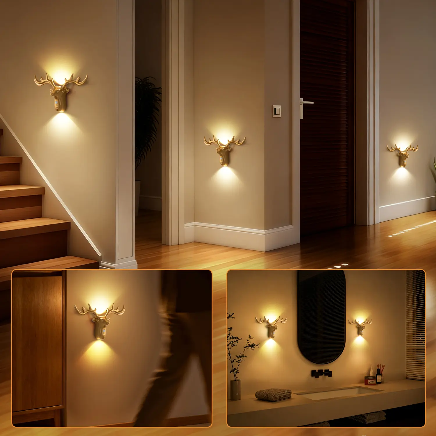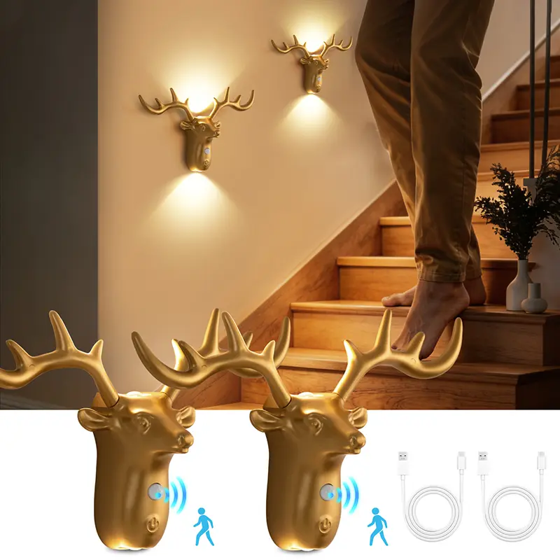 Smart LED Deer Step Light With Touch Dimming & Motion Sensor, Wireless Magnetic Wall Lamp, 1200mAh USB Rechargeable Night Light, Suitable For Stairs, Corridor, Bathroom, Bedrooms, Cabinets, Living Room, Bar Cabinet