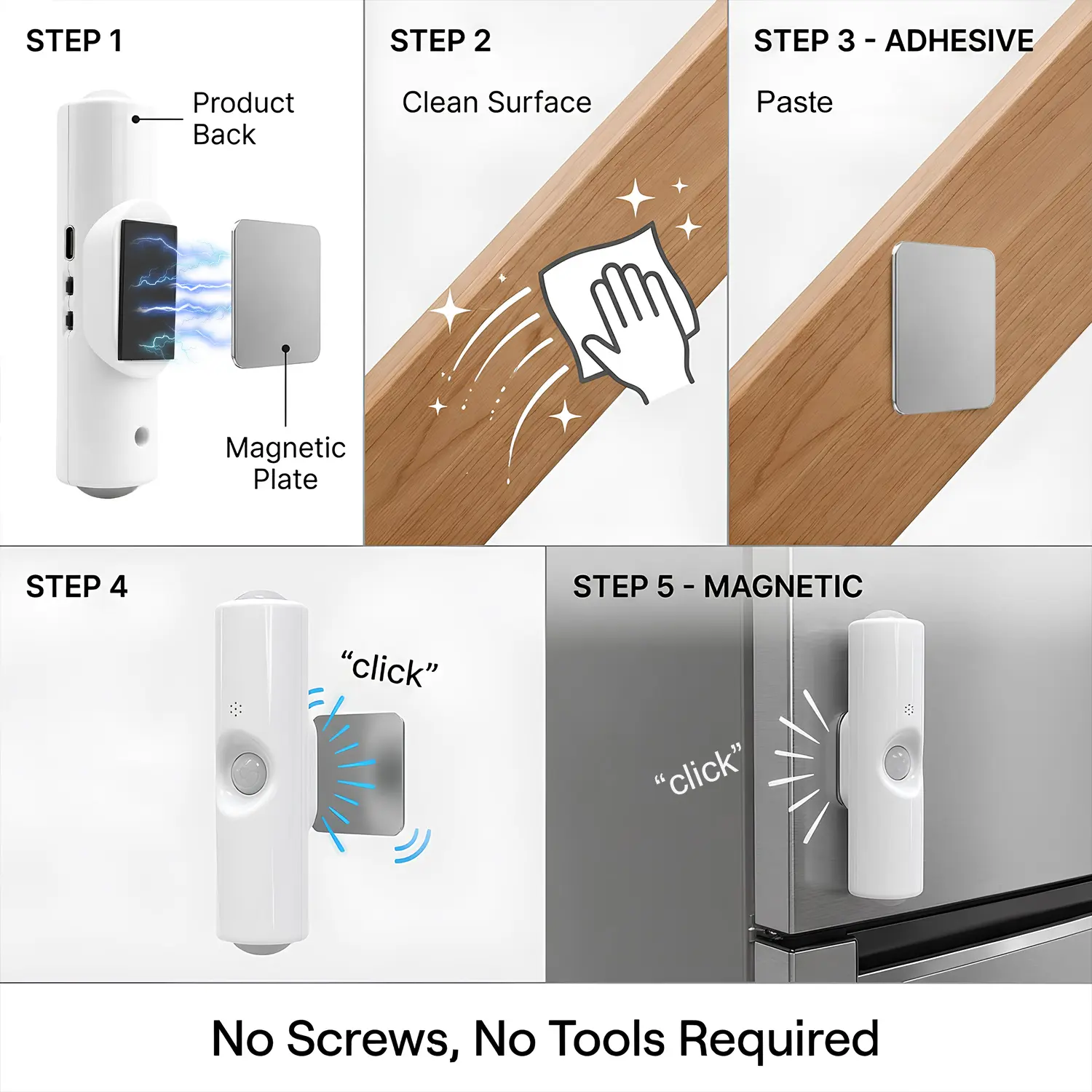 Β·Magnetic & Tool-Free Installation - Comes with adhesive magnetic plates: stick the plate to any surface (wall, cabinet, etc.), then attach the light via strong magnet. Easy to remove and repositionβno screws or tools required. Works on metal surfaces directly.