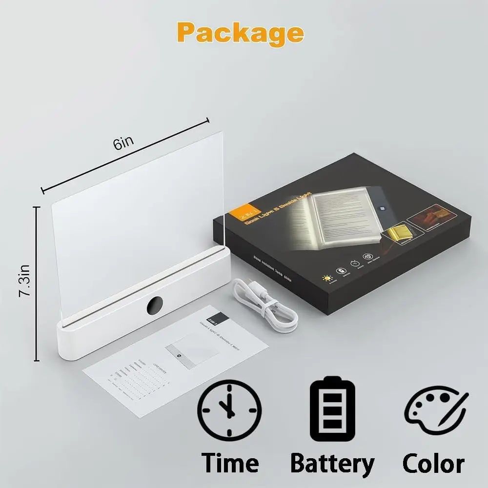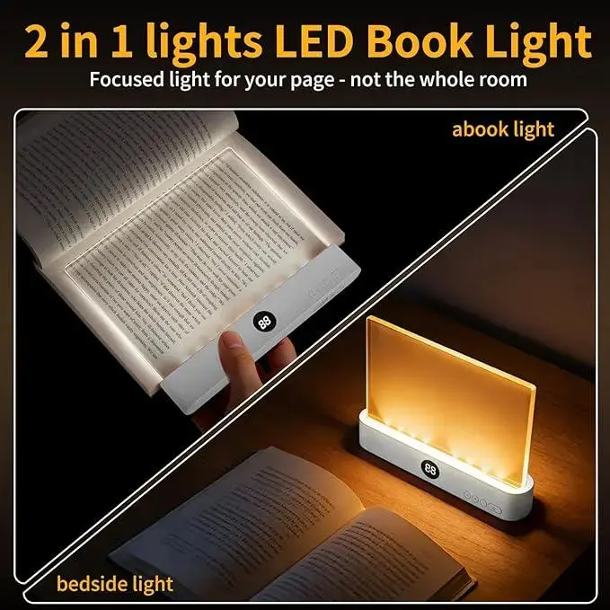 This rechargeable clear LED flat reading light is ideal forreading in bed at night. It features 3 colors and a timer,ensuring versatile lighting options. The dimmable panel platelamp provides full page illumination, making it perfect forreaders. A funny gift for readers, this light enhances yourreading experience.