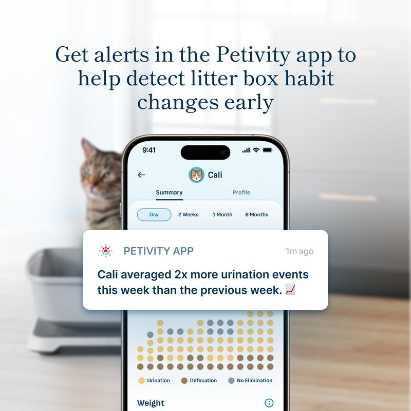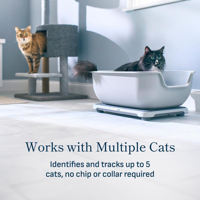 The Petivity Smart Litter Box Monitor uses AI technology to track your cat’s weight, urination, and defecation events. It delivers data via easy-to-read charts and monthly email reports. Alerts you to potential health issues, aiding veterinary diagnosis. One monitor tracks up to 5 cats. For homes with multiple boxes, buy one monitor per box for comprehensive data.