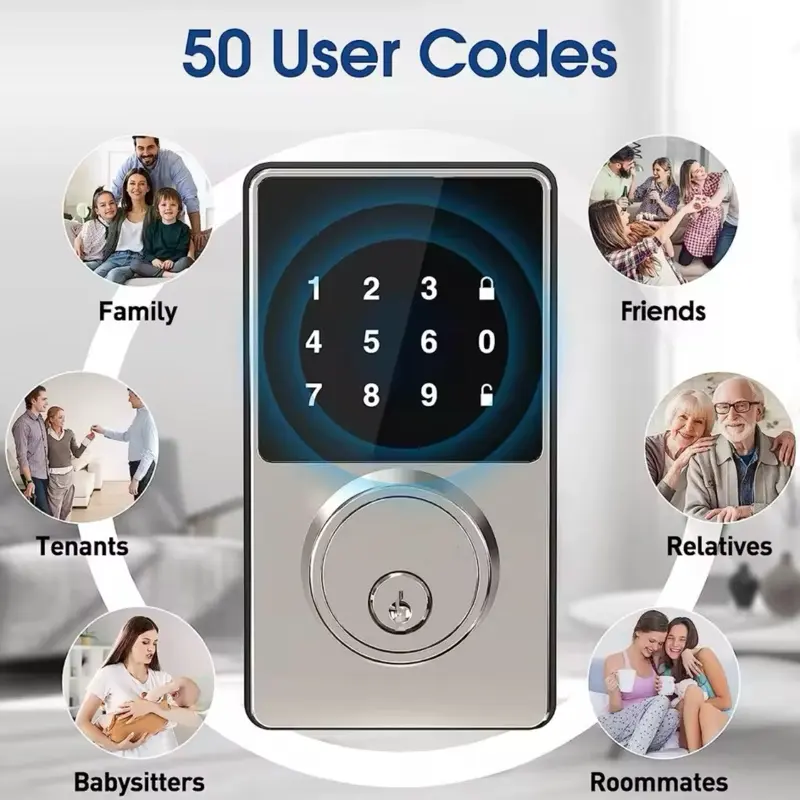 Keyless Entry Door Lock, Smart Lock with Touchscreen Keypad, Secure Deadbolt Lock with 50 User Codes, Easy Installation, Auto Lock, Waterproof Smart Lock for Front Door, Bedroom Door, Home, Apartment