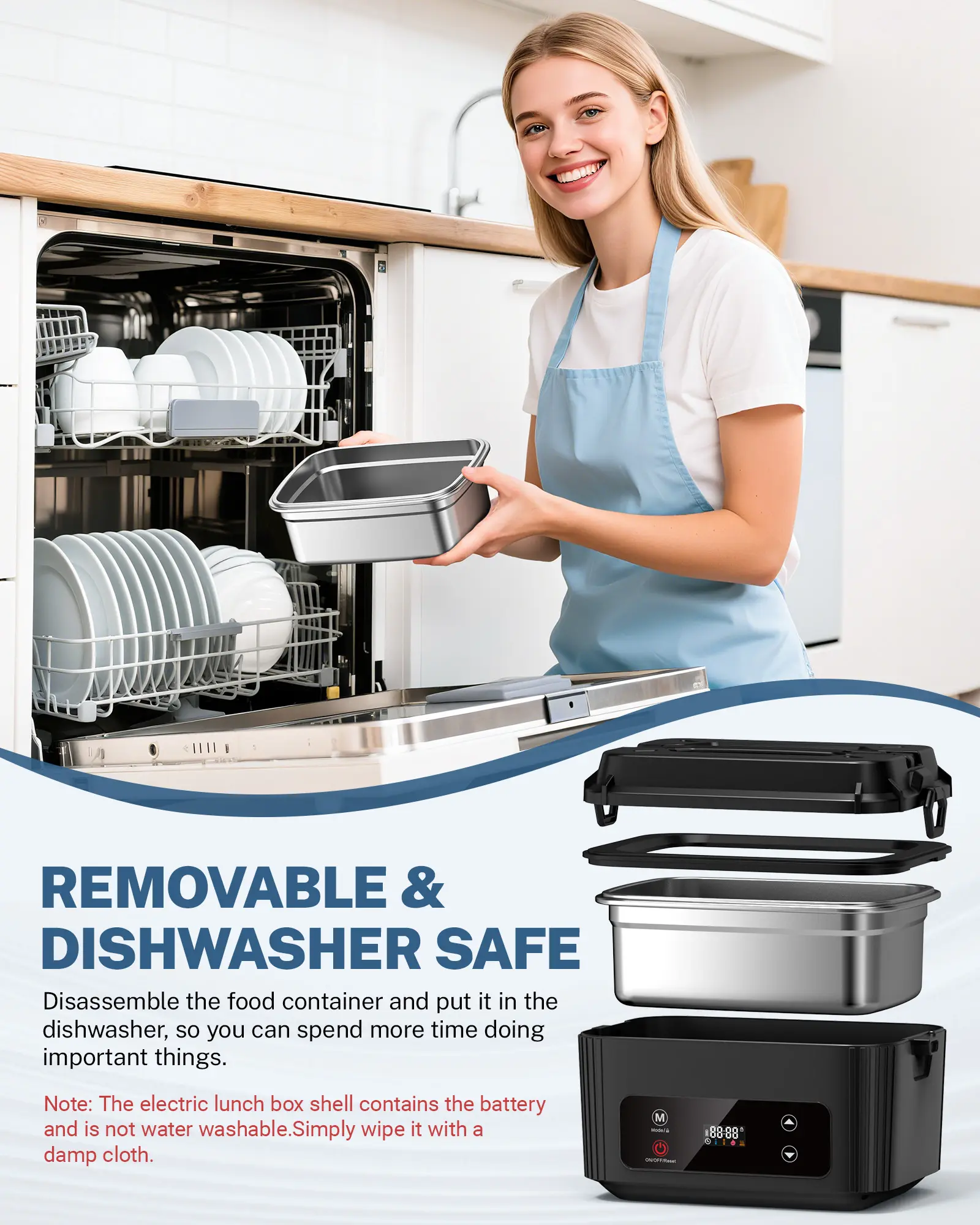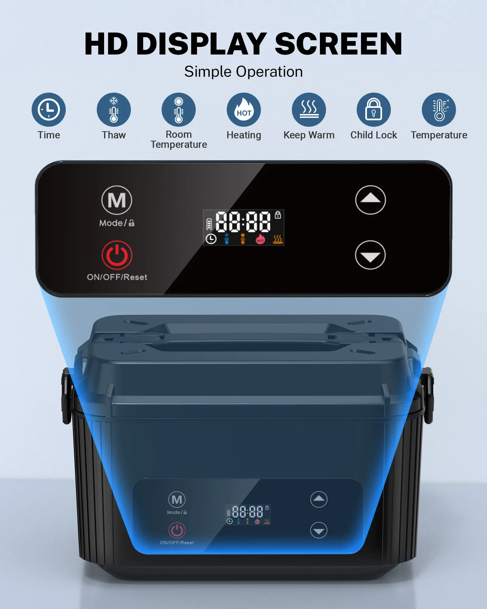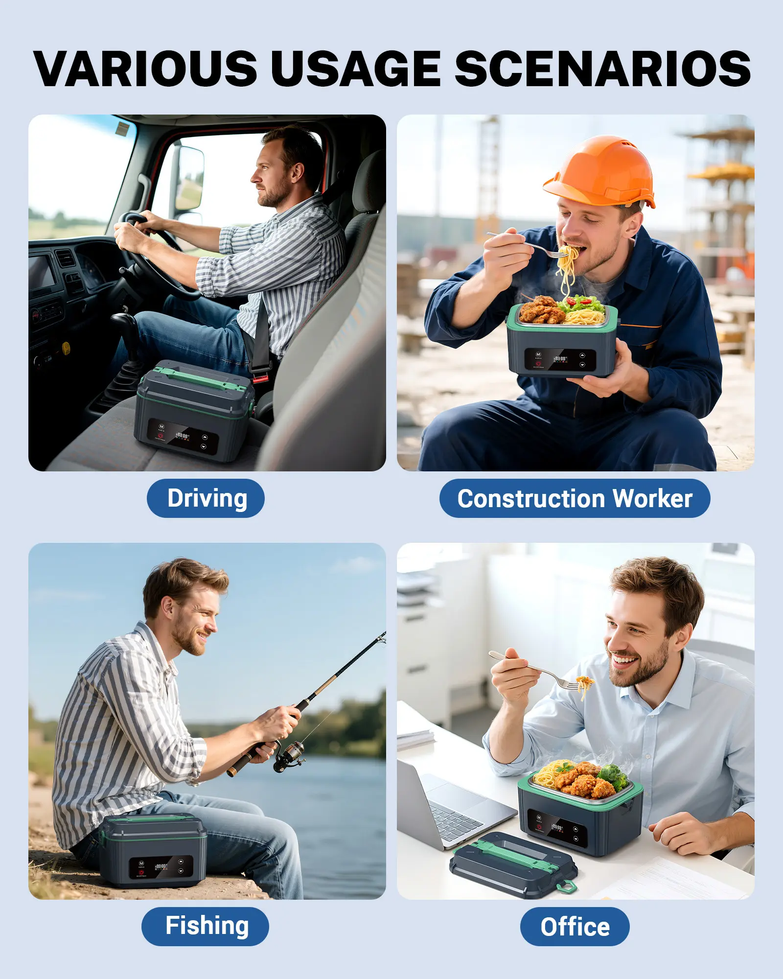 Battery-powered design lets you heat meals anywhere in 30–40 minutes and keep them warm until you’re ready to eat.