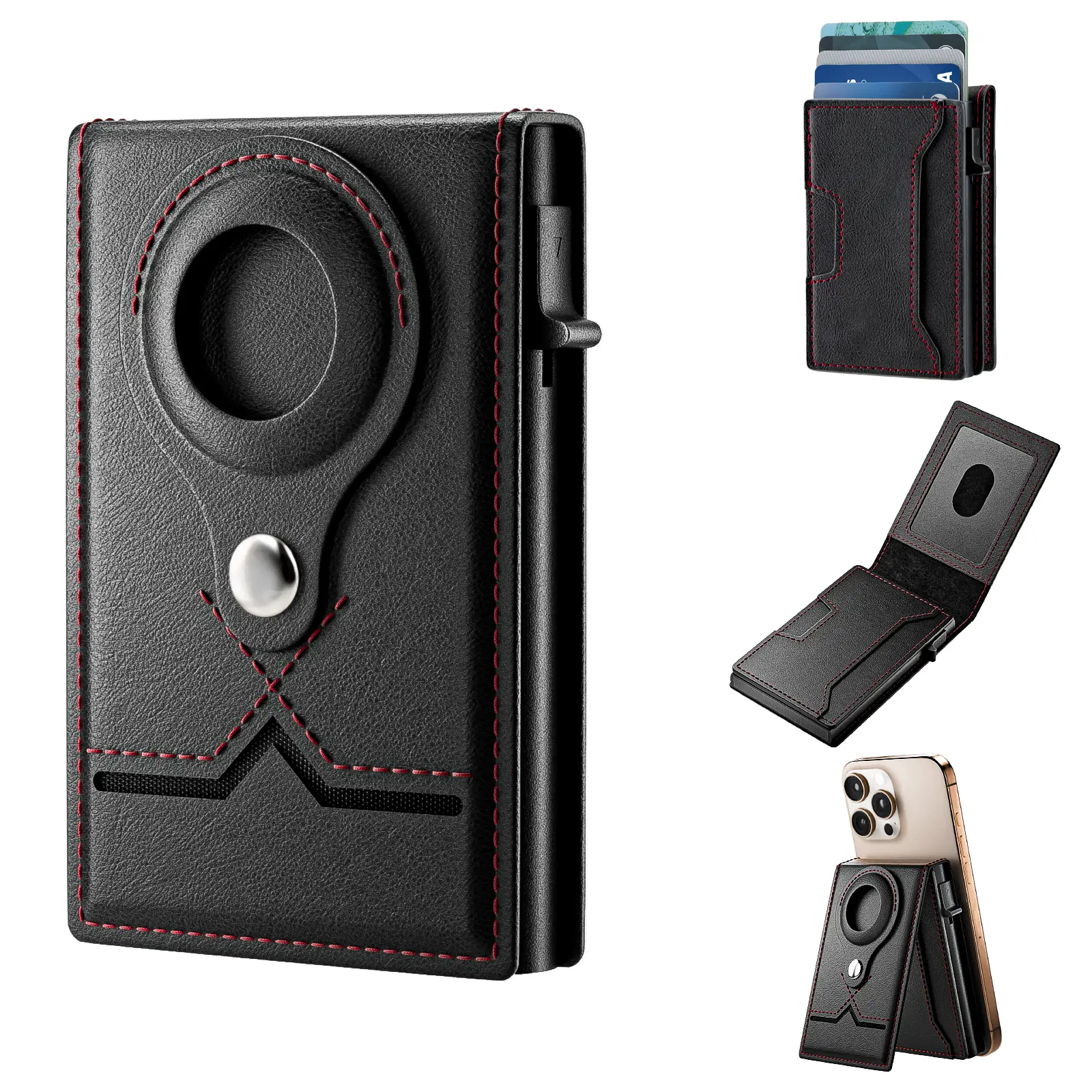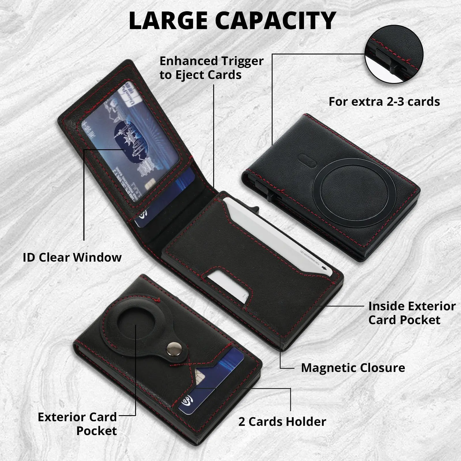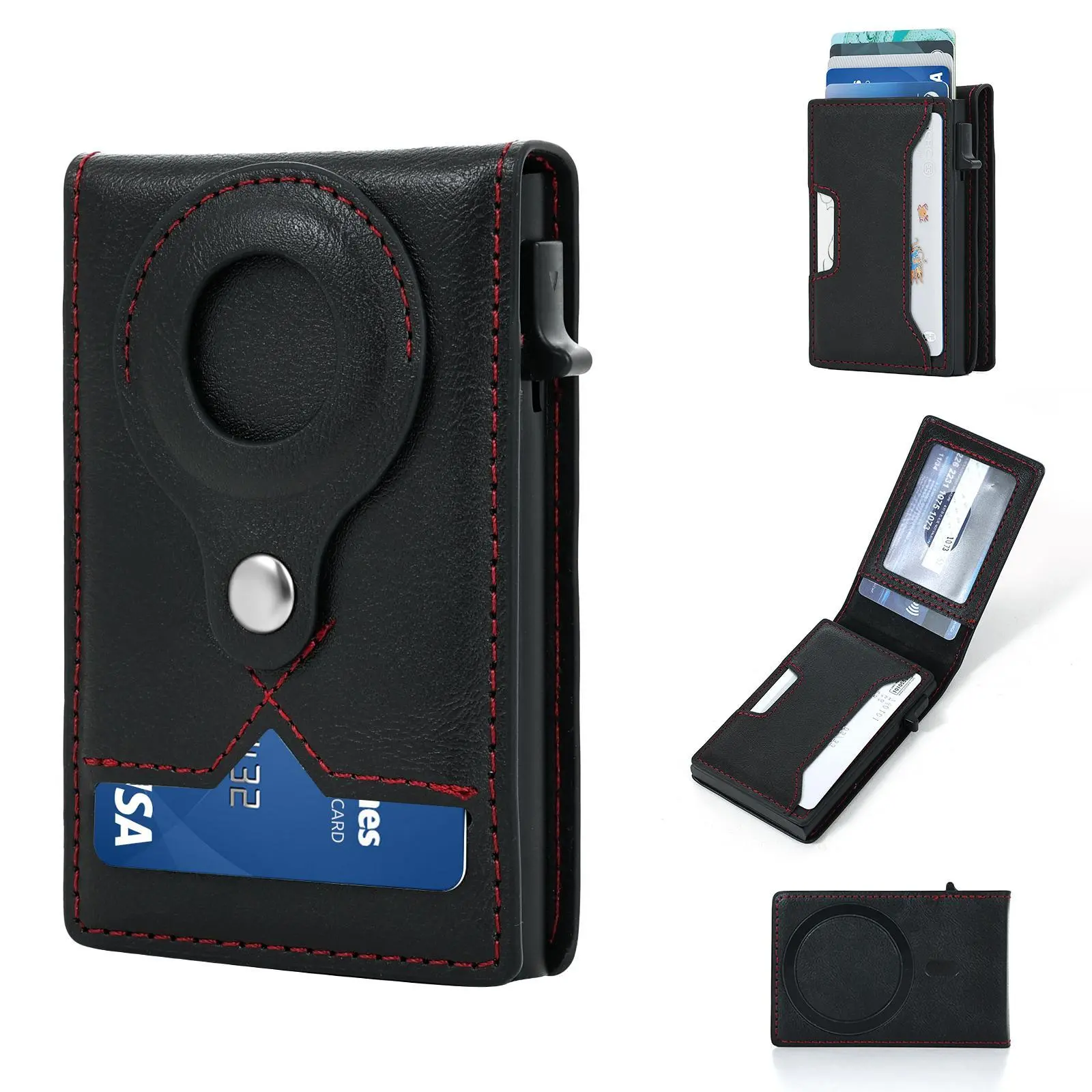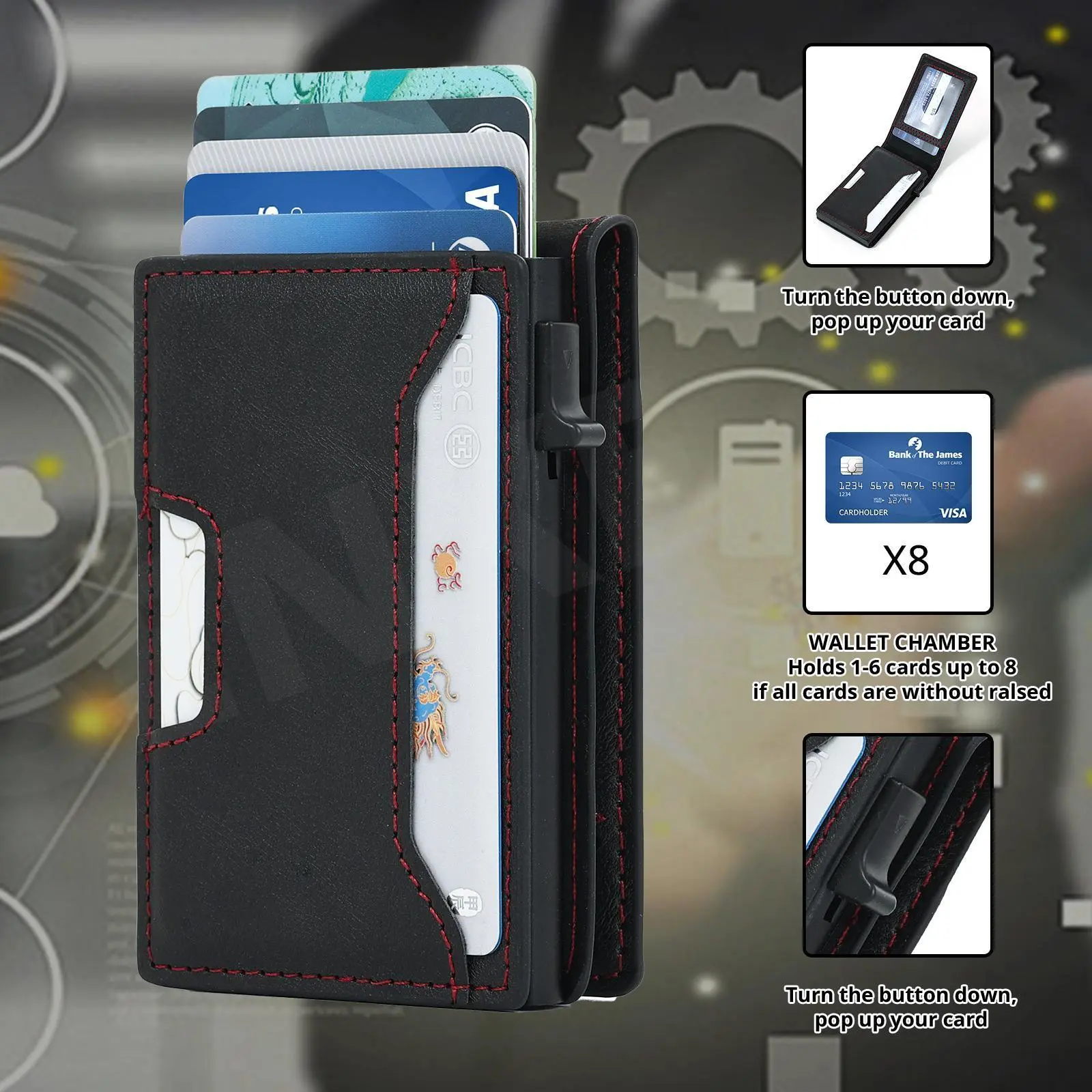 ·[Large capacity for cards] Totally 8 cards or little cash can be putted into this wallet, and you can take the cards out very easy with the automatic push card botton.