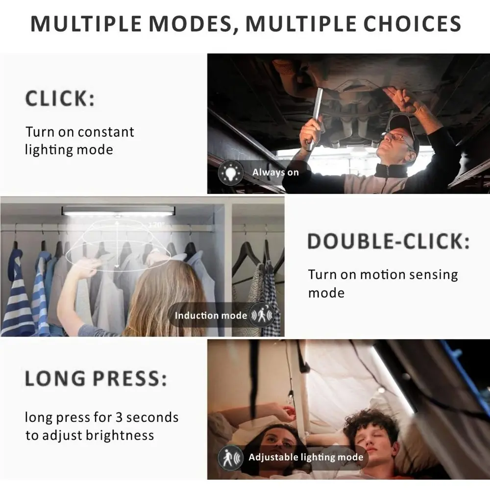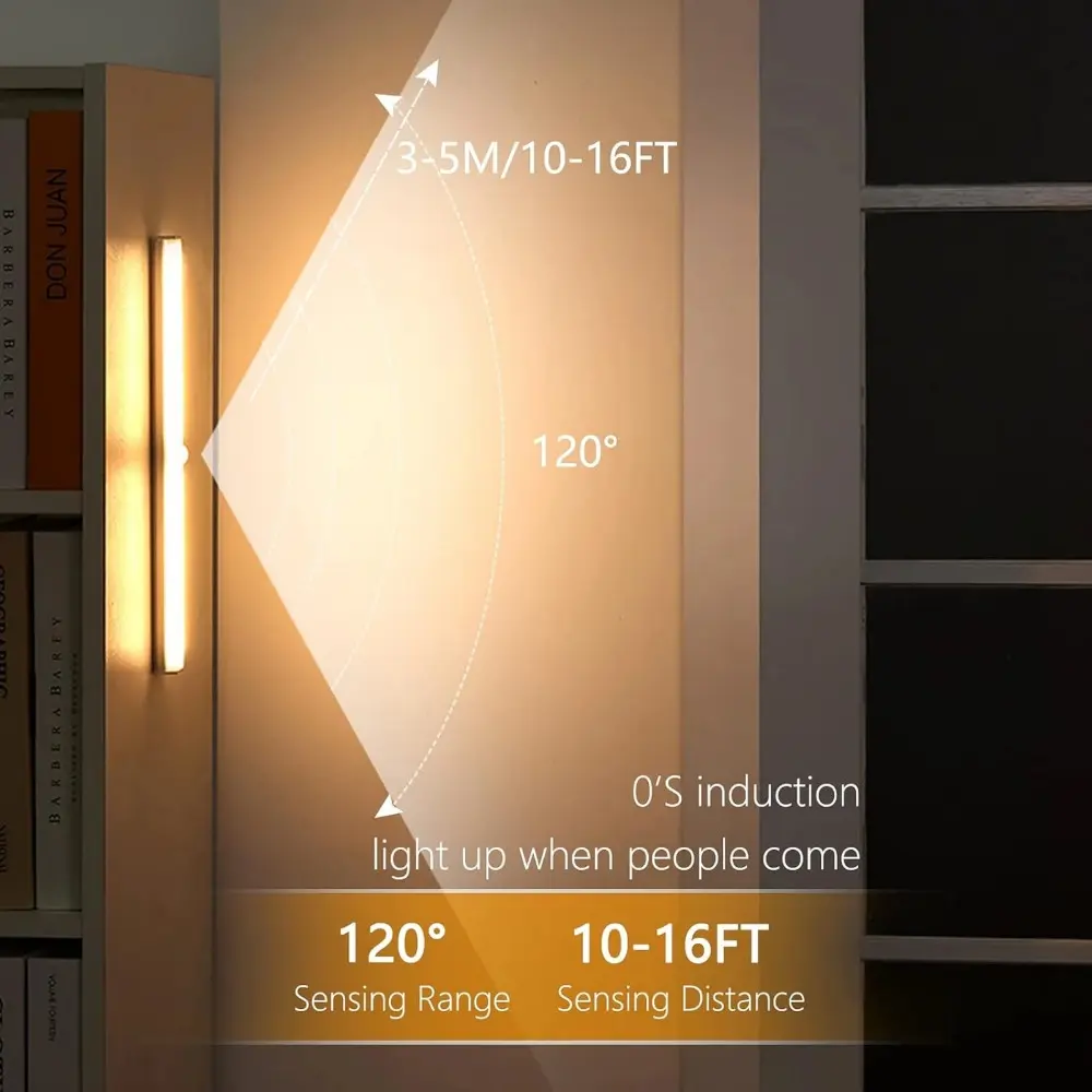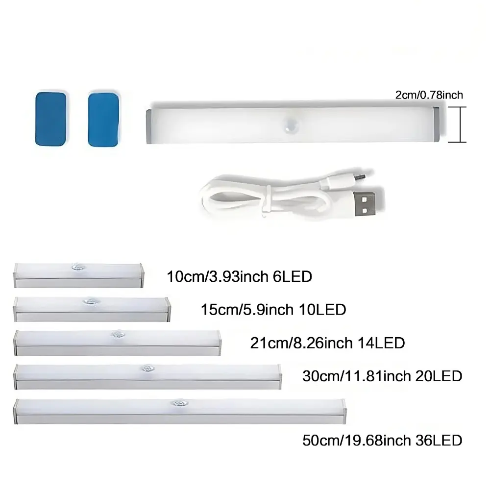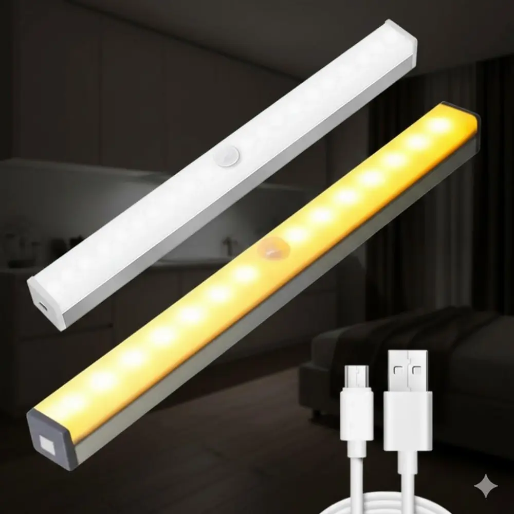 Smart Motion Sensor LED Light Strip: Rechargeable Bright Adjustable Lighting for Wardrobe Stairs Kitchen Garden Energy Efficient Installation No Drilling Needed Adjustable Leds