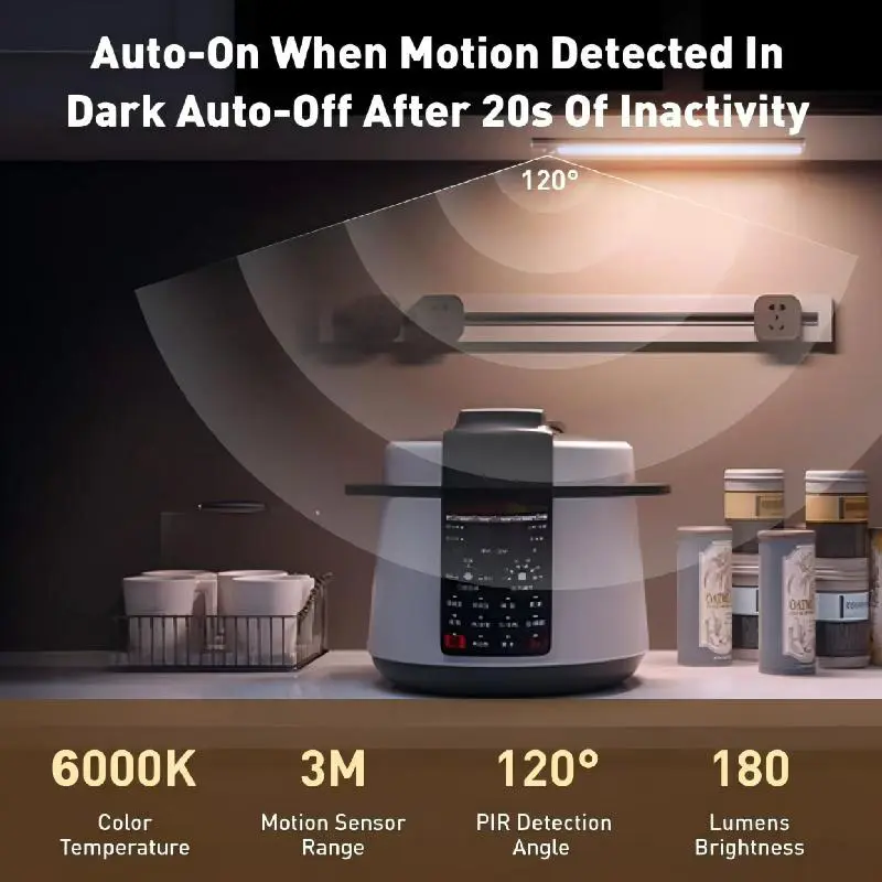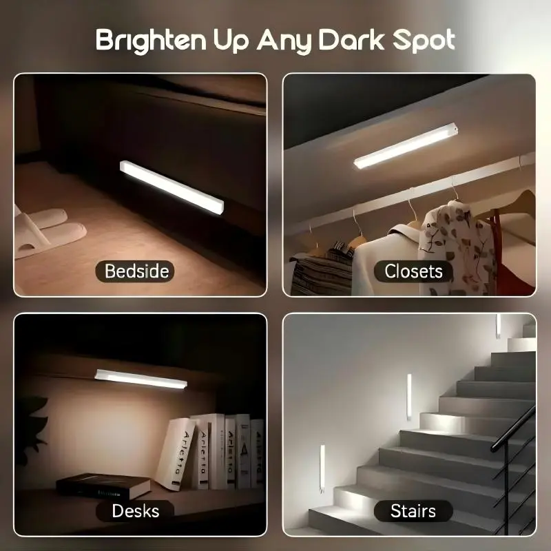 Smart Motion Sensor LED Strip Light, Wireless Magnetic Self-Adhesive Installation, USB Rechargeable Cabinet Drawer Night Light