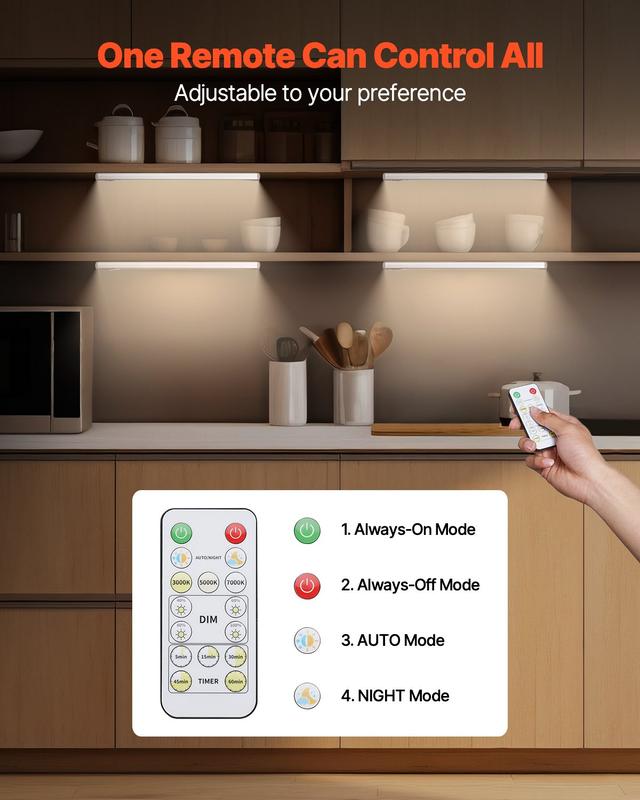 ·Dimmable & Adjustable Color Temperature: Adjust the brightness and choose from 3 color temperatures (3000K, 5000K, 7000K) to match your mood and space. Whether you’re setting the vibe for a cozy kitchen or brightening up your closet, these lights are ideal for any under cabinet lighting need.