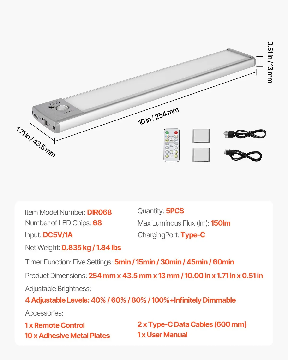 ·5-Piece Set with USB Charging: Get everything you need in one pack—this under cabinet lighting set includes 5 lights, USB charging, and a 1700mAh rechargeable battery. Ideal for closets, wine racks, and more, it offers easy wireless installation for hassle-free use.