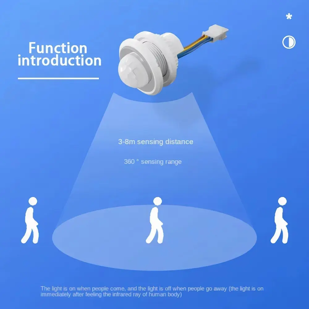 Smart Motion Sensor Switch: Adjustable Delay Timer, Energy-Saving Light Control Module. Indoor/Outdoor Wall-Mounted Infrared Detector for Home Security & Automation.