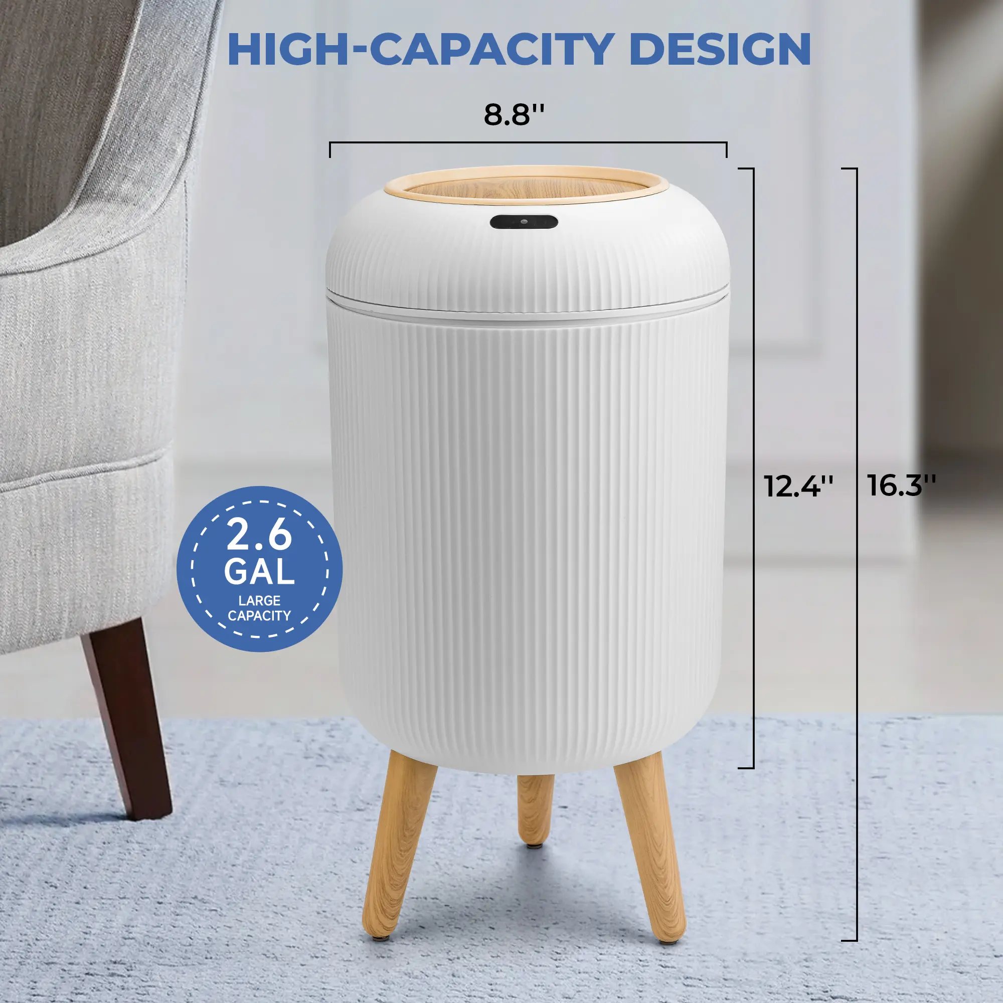 ·Nordic Modern Design: 8''LĂ8''WĂ16.3''H, 2.6 Gallons, durable ABS materials. The simple appearance looks beautiful and clean, making it easy for guests to mistake it for a cute storage box or artwork.
