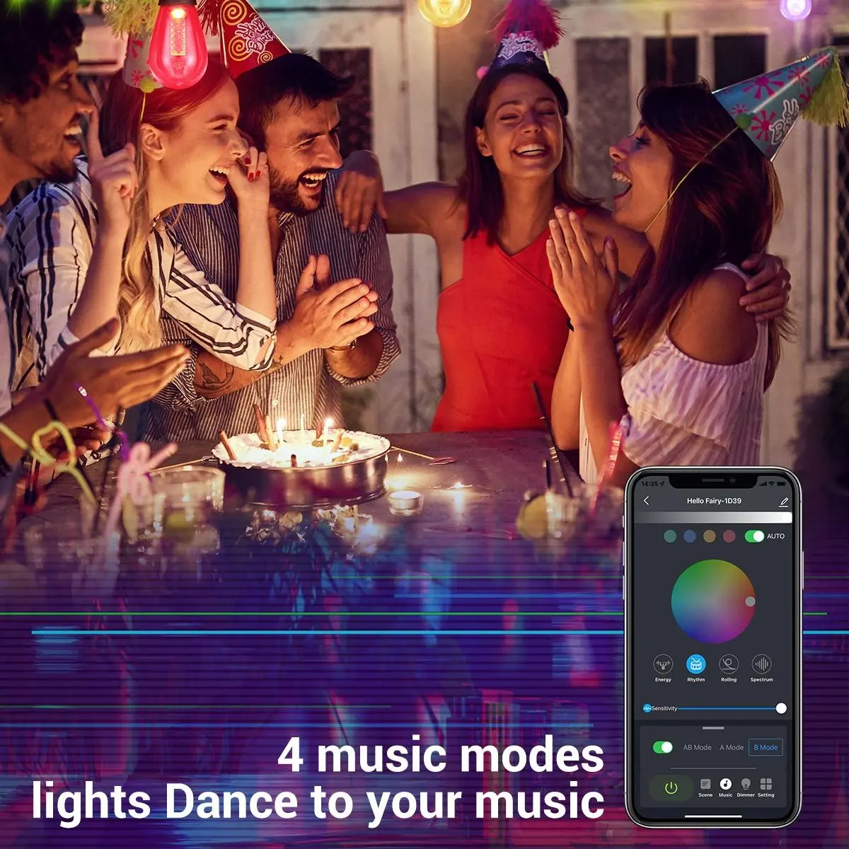 ·Sync with Music: Equipped with a built-in microphone and 4 music rhythm modes, the lights can dance or jog along with the music rhythm or ambient sound. The colors change in sync with the beat, creating a dynamic and romantic atmosphere, ideal for birthdays, weddings, parties, camping, and other events.