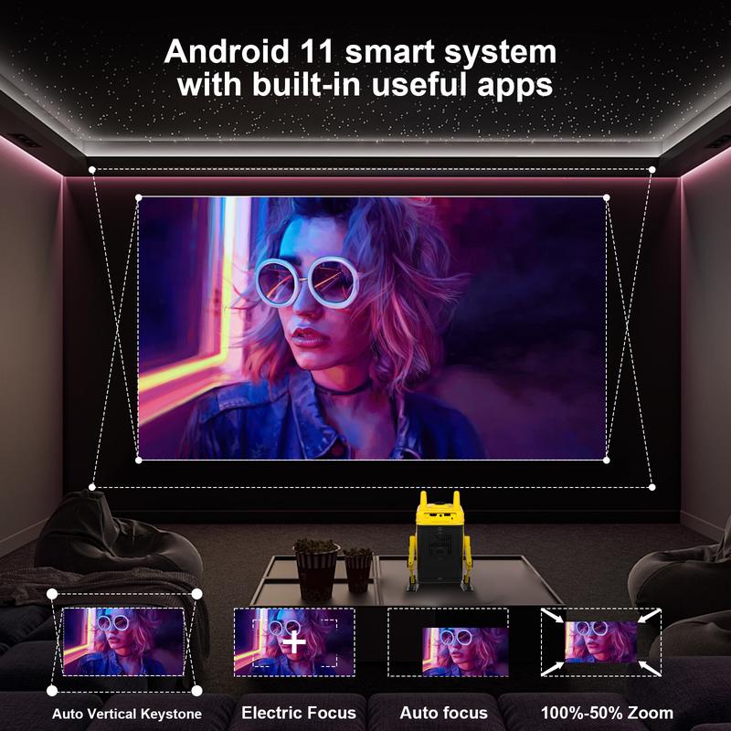 Imagine transforming your backyard into a movie theater in minutes—no hassle, just pure fun. The XBJ Smart Outdoor Projector brings your favorite films and shows to life with vibrant 1920x1080P resolution and 300 ultra-high lumens for bright, clear images. Powered by Android TV 11.0, it lets you stream Netflix and access over 5000 apps, so entertainment options are endless. Whether you’re chilling indoors or hosting an outdoor movie night, the 120° rotatable auto-focus and trapezoidal correction guarantee a perfectly sharp image from any angle or distance between 0.6 and 4.2 meters. Compact and lightweight at just 810g, it’s easy to carry and set up anywhere. Plus, the built-in stereo sound fills your space with rich audio, making every scene pop. The package includes the projector, an instruction manual, and all the accessories you need to start your cinematic adventure right away. Ready to elevate your movie nights? Grab this smart projector and bring the big screen experience home or outside with you!