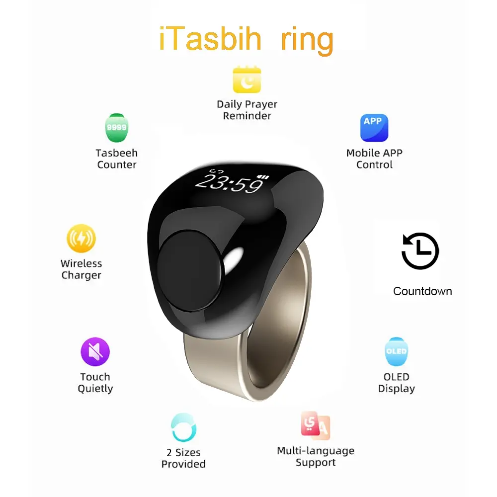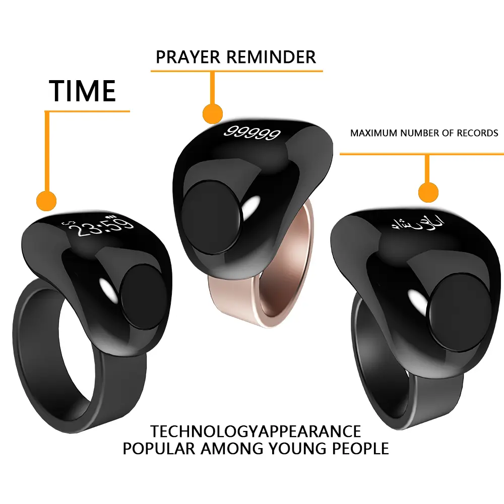 Muslim Prayer Beads Ring, Precision APP Reminder, Waterproof Design, Long Battery Life, 33/99 Prayers, Smart Electronic Rosary