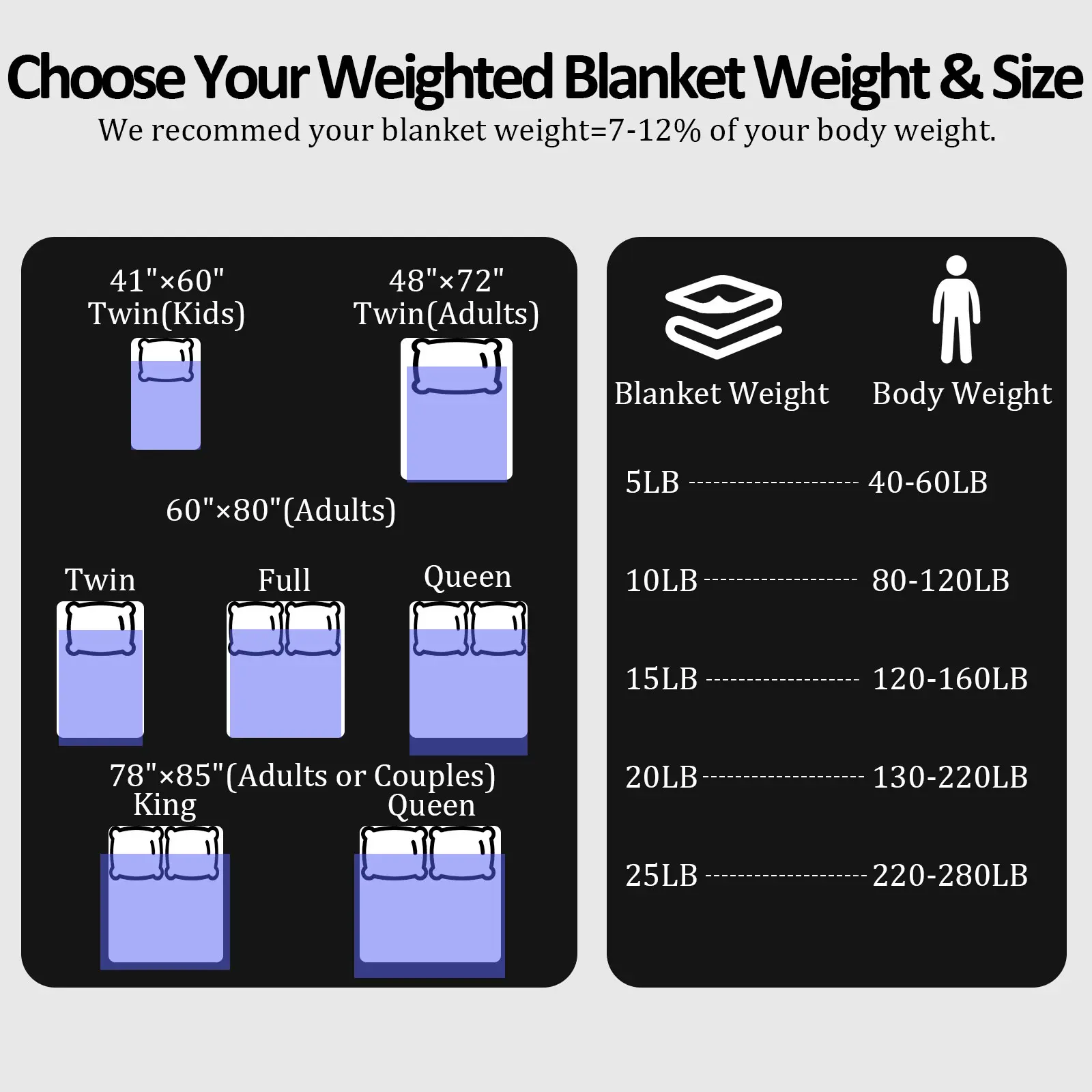 Blanket is nice and heavy, as described. One note: this blanket only covers the top of the mattress, with no overhang. I have a queen size bed and ordered the queen size blanket. The blanket is literally only big enough to cover the top of the mattress.