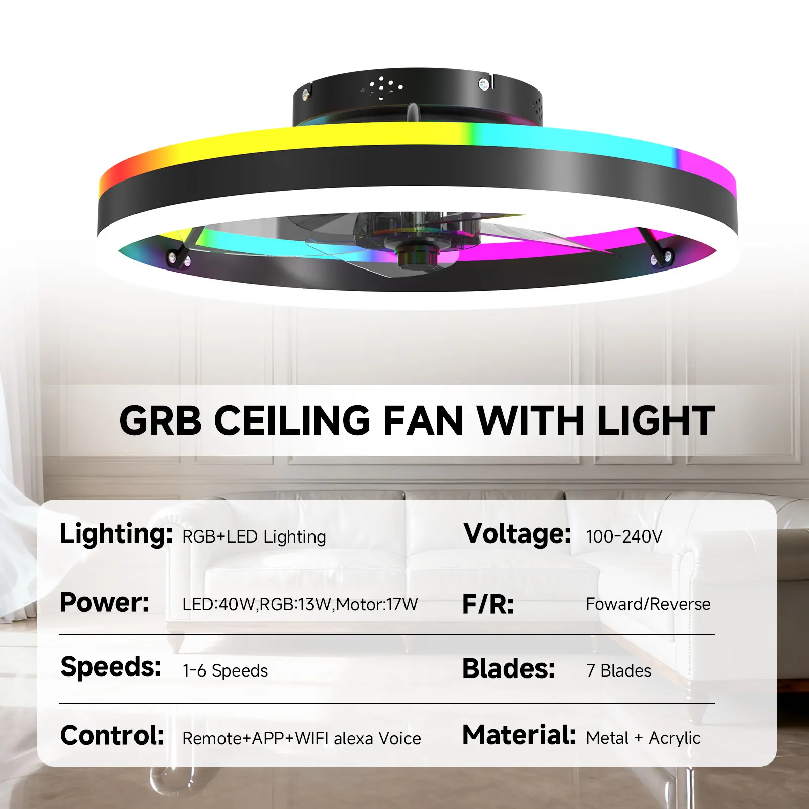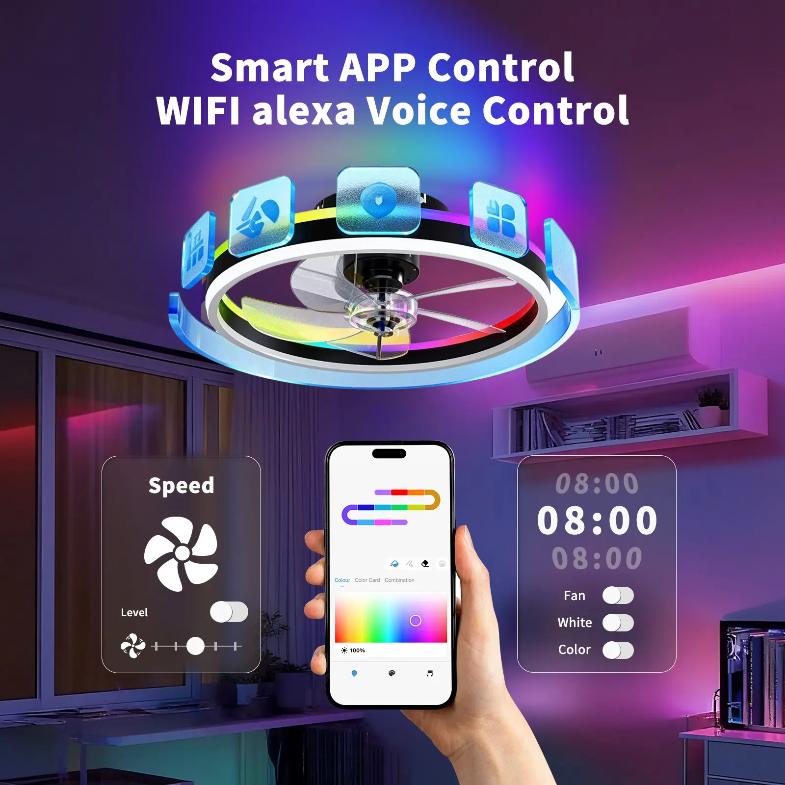 Enjoy hands-free control through Alexa and Google Home. Easily adjust fan speed, brightness, and color via voice commands, the App, or the included Bluetooth remote. Schedule timers, sync with your routines, and experience effortless comfort.