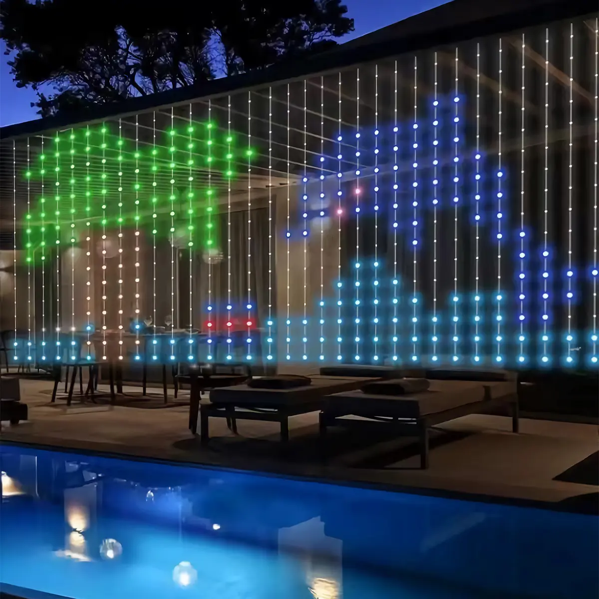 Super nice, tienes decoración para toda ocasión. Me evito estar poniendo y guardando cada época del año...con esta cortina de luces tienes para todas las épocas y para cada celebración