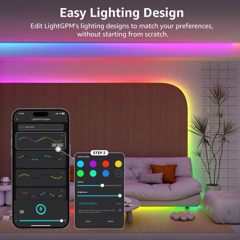 Warm Tips Before Purchase: Please select a length that closely matches your requirements, as the strip lights cannot be cut. Additionally, this S1 AI strip light is only compatible with the Lepro app (not compatible with the "Lepro Lampux" or "Smart Life" app). And it does not come with a remote control, as the remote only offers a few fixed modes. We have released more exciting features and DIY designs on our app, which is continuously updated. We hope you will explore more with Lepro.