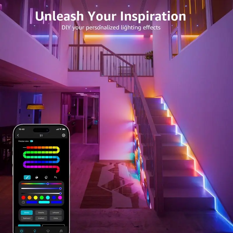 【DIY with Inspiration】 - Don’t want AI-generated scenes? It doesn't matter! We provide higher user flexibility and intelligent lighting effects, you can customize the color, brightness, and lighting effects of each segment of the S1 light strip. Just unleash your inspiration!