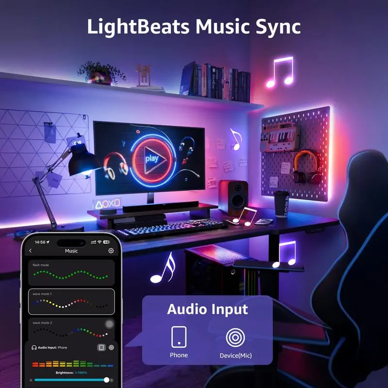 ·【LightBeats Music Sync】 - Experience dynamic lighting that syncs with music rhythms, transforming any space into an energetic and mesmerizing environment for parties or dancing.