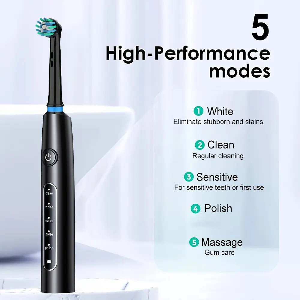 【Rotating Brush Head】: Equipped with a rotating brush head that provides thorough cleaning to ensure a comprehensive tooth care routine.
