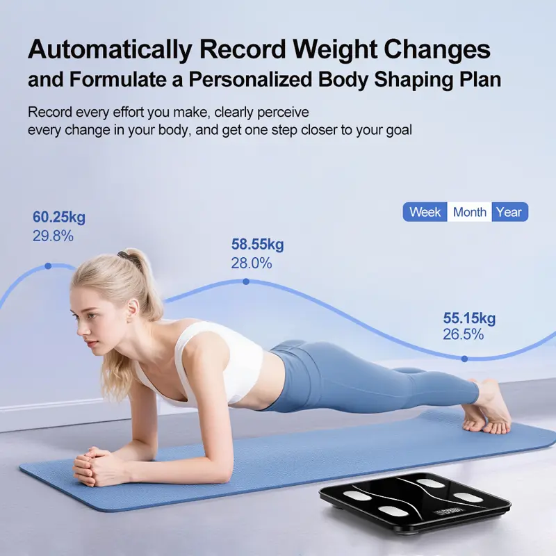 This scale offers a convenient way to monitor your health metrics. The app allows you to track progress over time. Stay motivated with clear, visual feedback. Ideal for anyone looking to improve their health goals.