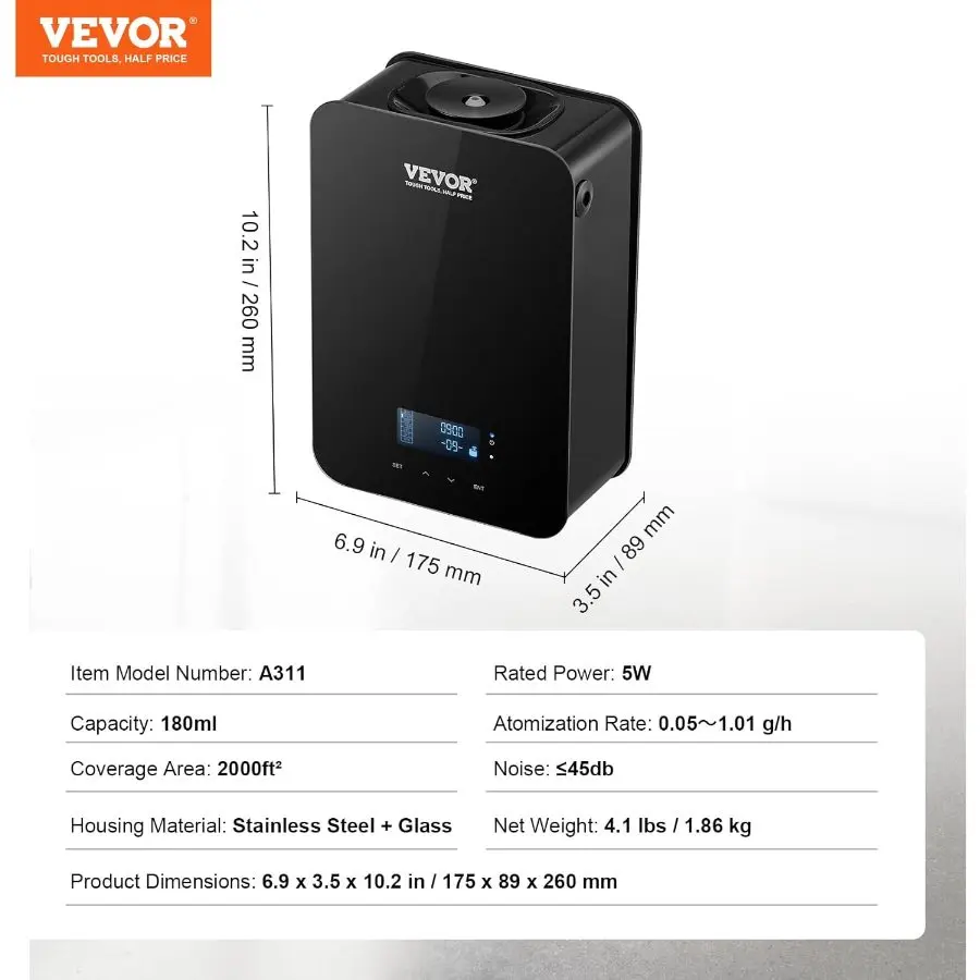 VEVOR Upgrade HVAC Scent Diffuser, Smart Scent Air Machine for Home, 180ML with Cold Air Technology, Waterless Essential Oil Diffuser, Cover Up to 2000 Sq. Ft for Living Room, Office, Spa, HotelVEVOR Upgrade HVAC Scent Diffuser, Smart Scent Air Machine for Home, 180ML with Cold Air Technology, Waterless Essential Oil Diffuser, Cover Up to 2000 Sq. Ft for Living Room, Office, Spa, Hotel