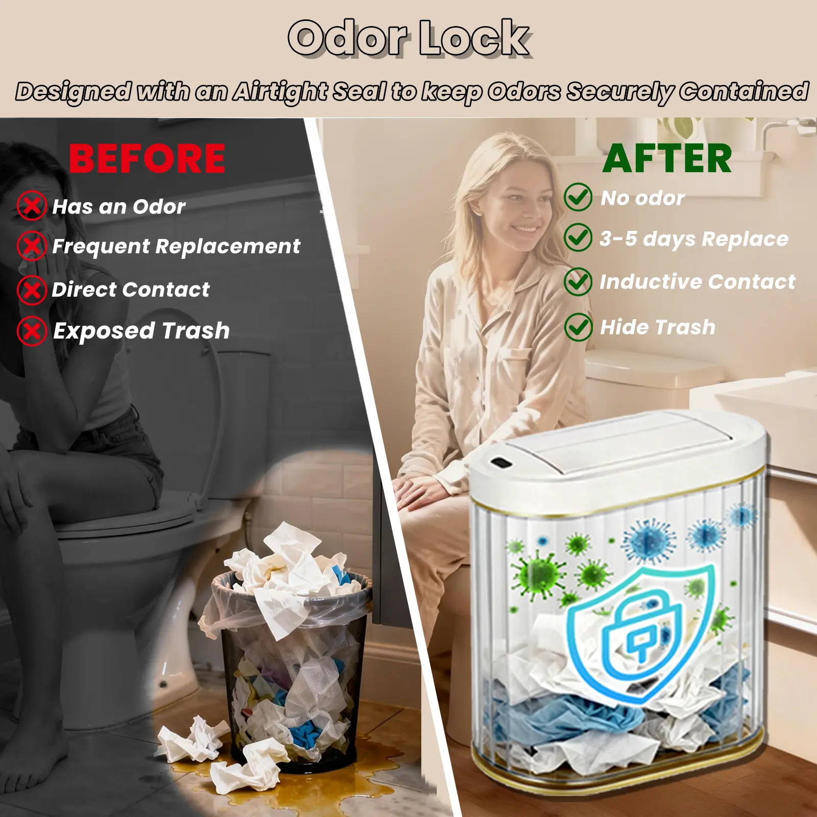 ·Free Gifts Included: 2 rolls of trash bags + 2 AA batteries, so you can start using it right out of the box!