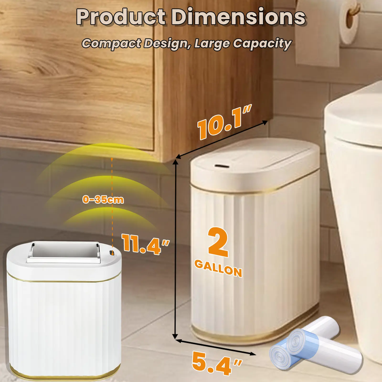 With dimensions of 10.1” x 11.4” x 5.4”, the bathroom trash can with lid slides easily into the narrow gap between the toilet and sink—ideal for small apartments, RV bathrooms, or bathrooms with limited counter space. The 2-gallon capacity holds 2-3 days of daily waste for a family of 3 (e.g., toothpaste tubes, hair ties, skincare packaging), so you don’t have to empty it every morning before work or after kids’ bedtime routines. The automatic trash can also fits neatly beside the vanity without crowding your skincare products