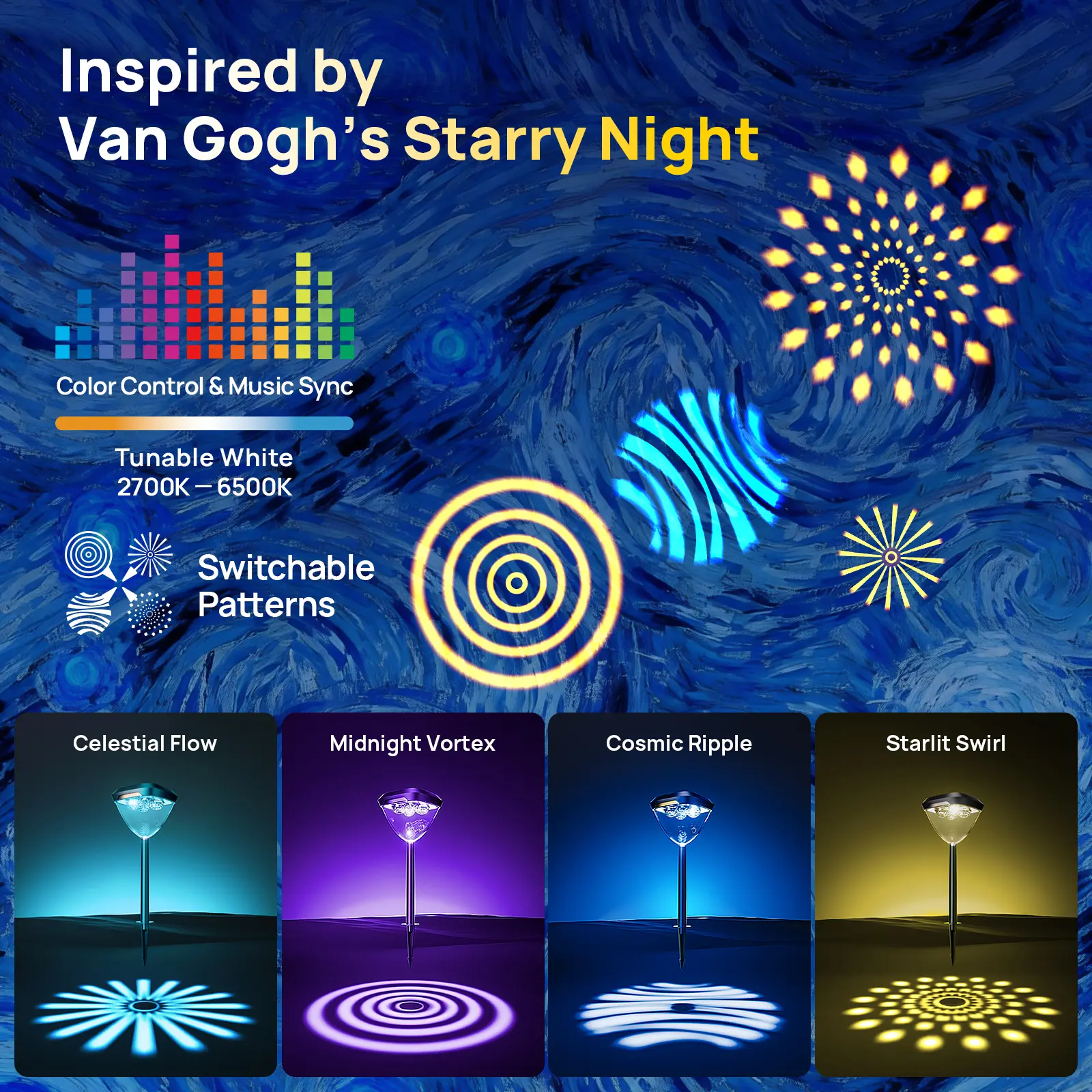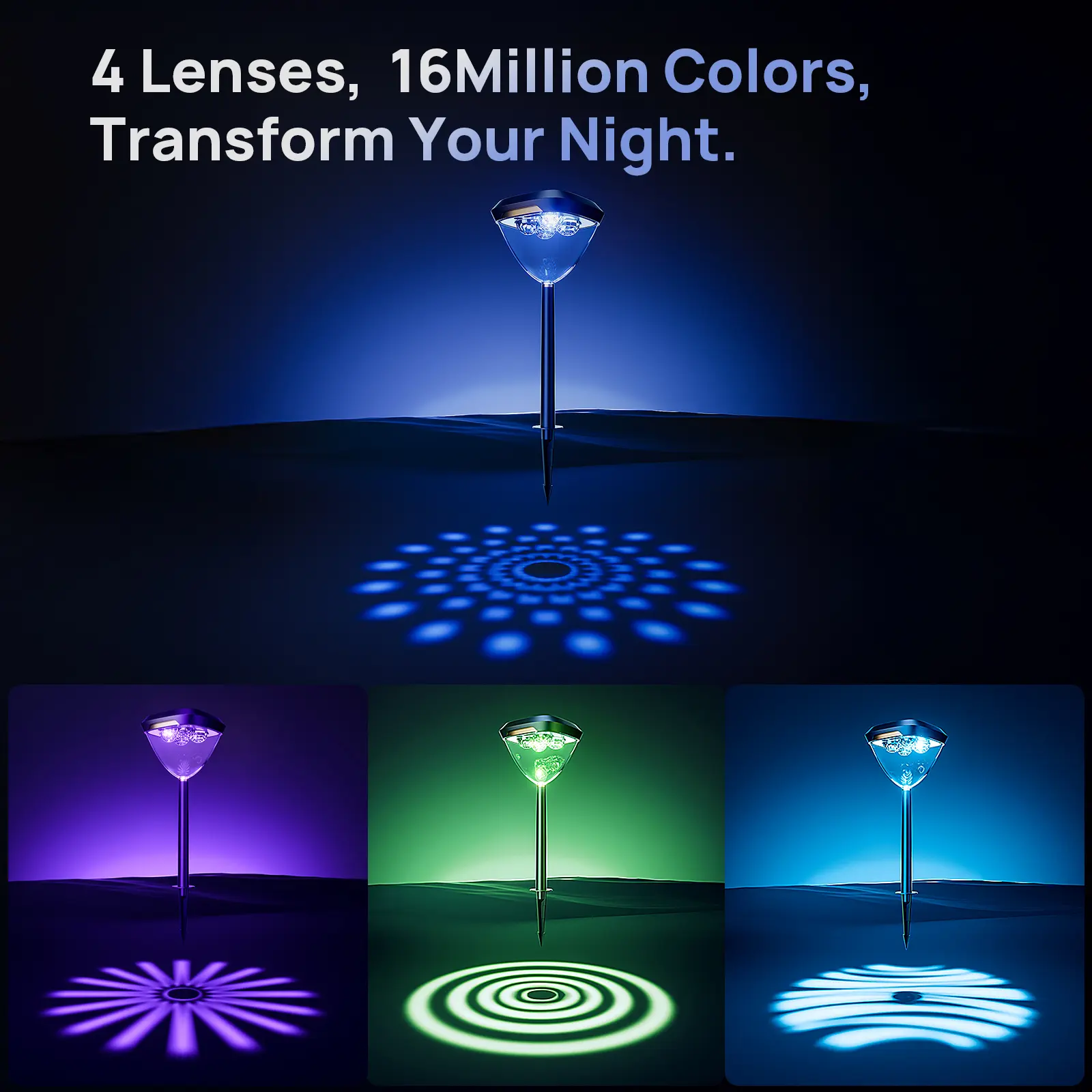·Each light features interchangeable lenses that shape light like brushstrokes. From calm, pure illumination to intricate, artistic patterns—you decide how the night should feel.