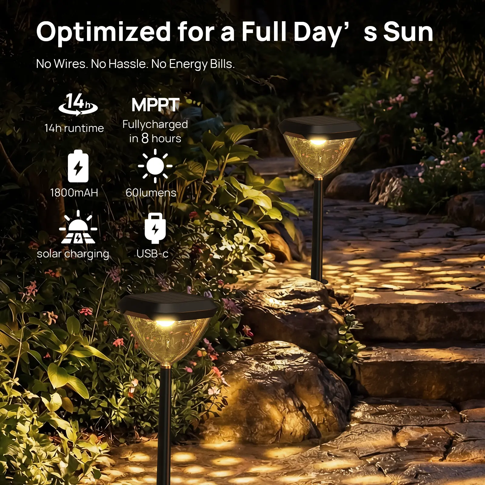 ·Powered by advanced solar technology with USB-C backup charging,cthese lights shine longer and brighter—not just as decoration, but as dependable nighttime lighting.
