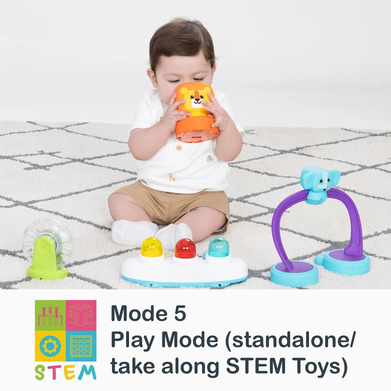 ·Five unique modes are perfect for growing baby! 1. Floor Seat Entertainer Mode, 2. Activity Seat Mode, 3. Infant Booster Seat Mode, 4. Toddler Booster Seat Mode 5. Play Mode (standalone/take along STEM Toys