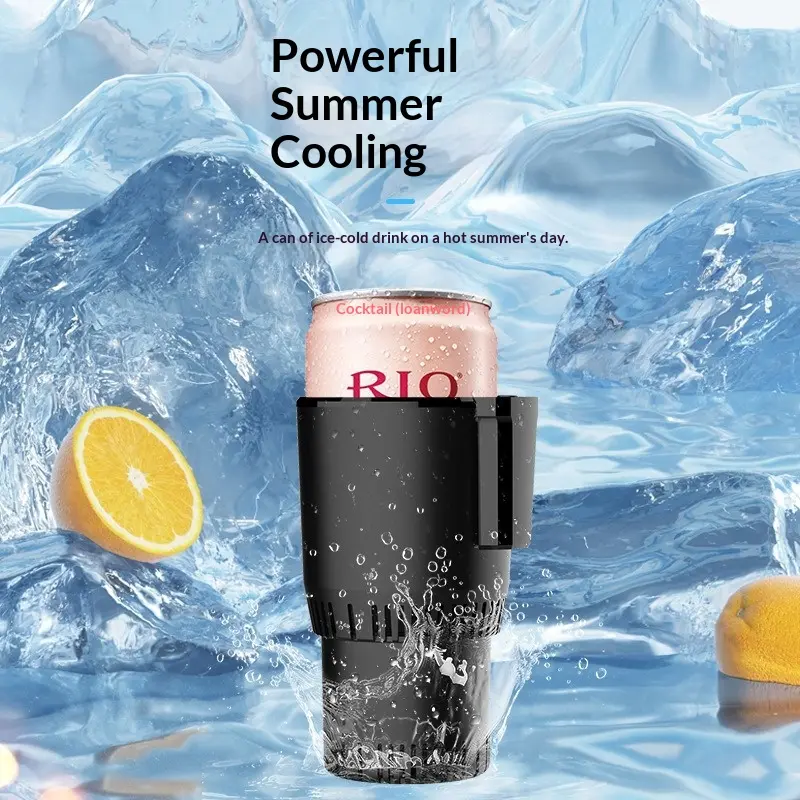 Recent smart temperature-controlled cup with TEC cooling and heating technology. Cools in 15 mins to 2-7°C, heats in 8 mins to 58-70°C. Portable, quiet, compatible with various containers. Ideal for car, office, home, and outdoor use.