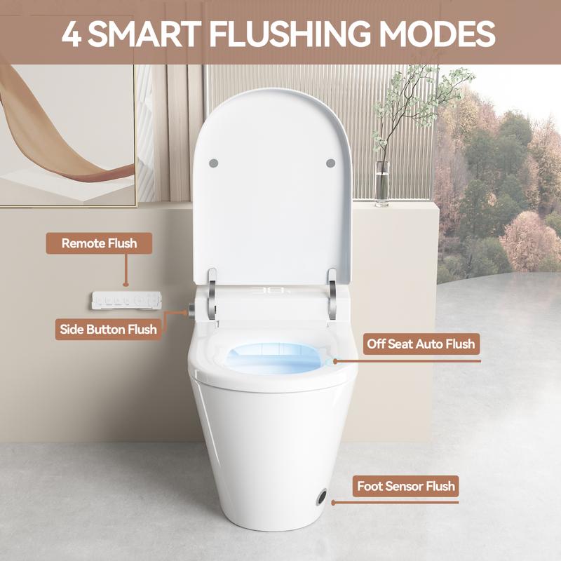 ·Choose from multiple flushing methods including off-seat flushing, button control flushing, foot sensor flushing, and remote control flushing for a hands-free operation.