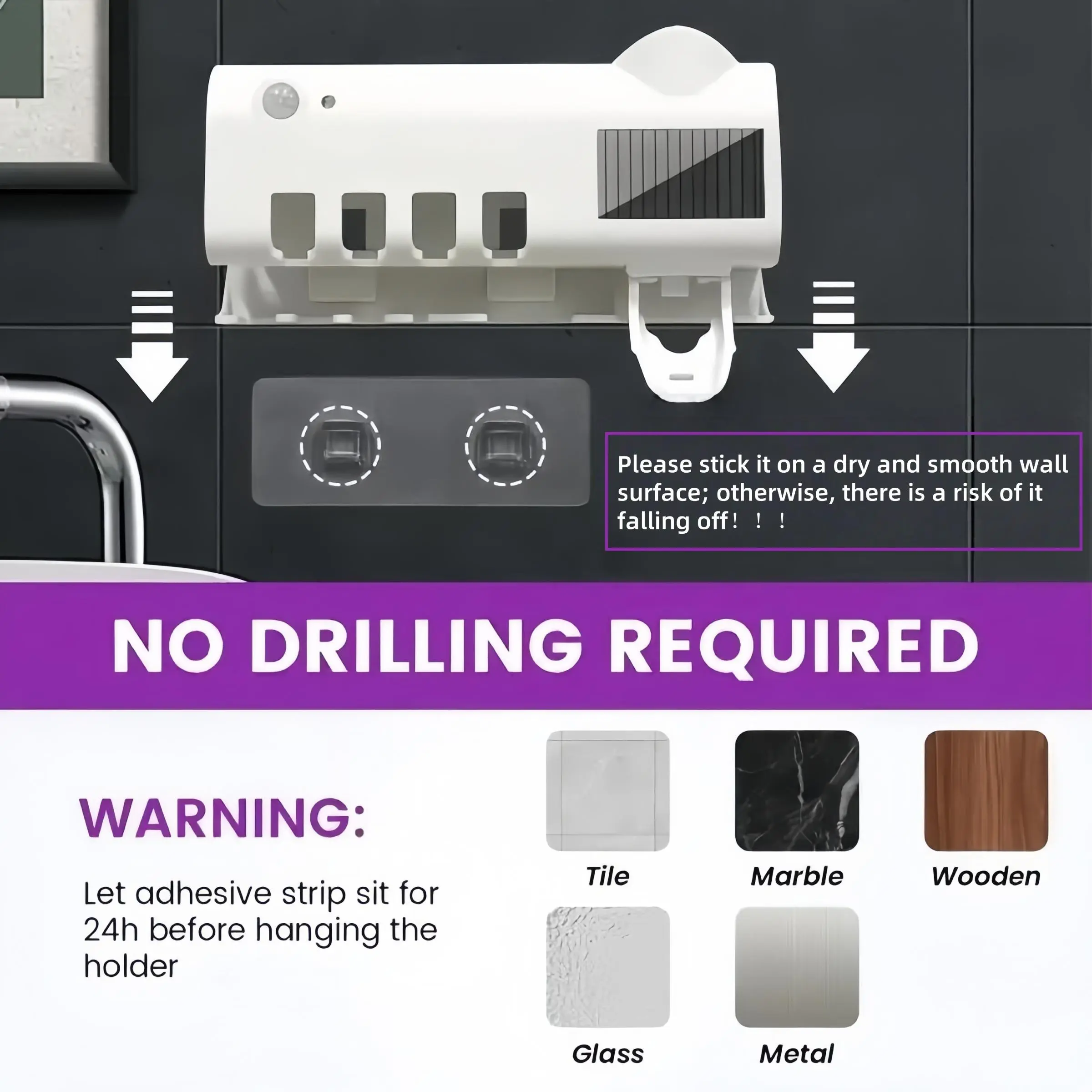 Smart Toothbrush Sterilizer with Automatic Toothpaste Dispenser, UV Sterilizer and Electric Toothbrush Holder, Wall-Mounted Toothbrush Storage Rack with UV Toothbrush Holders